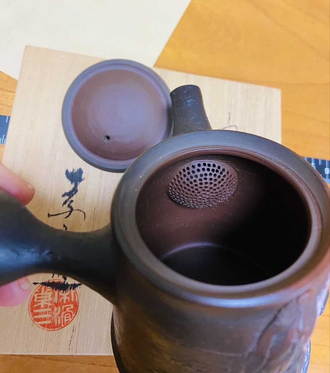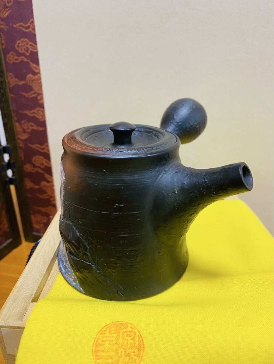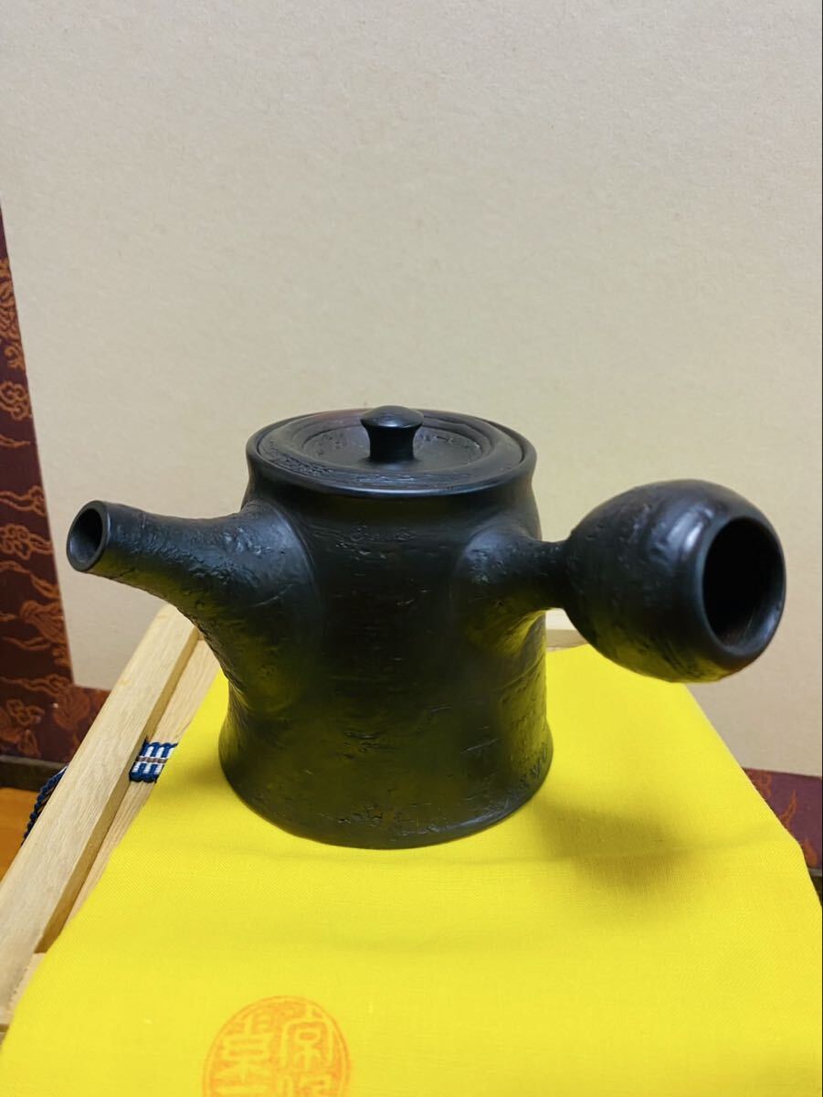 Product name: 急須 常滑焼 不識庵 四代目素三 亀岡克史 変滝彫急須 茶道具 茶注 茶器 煎茶道具 共布 黒泥