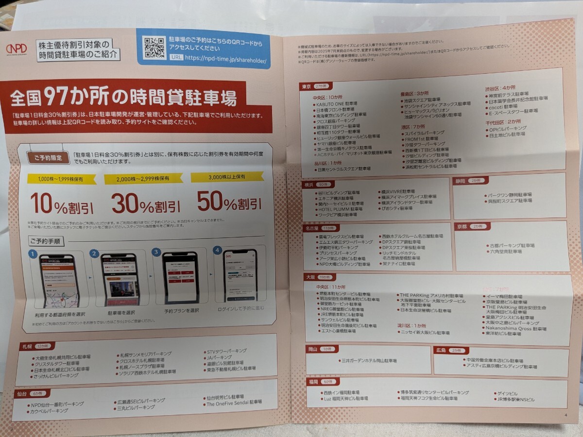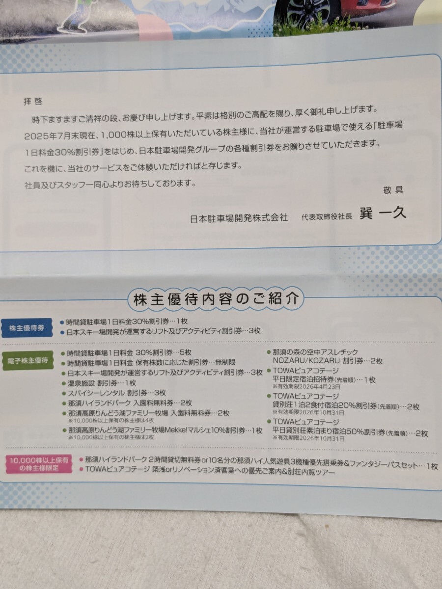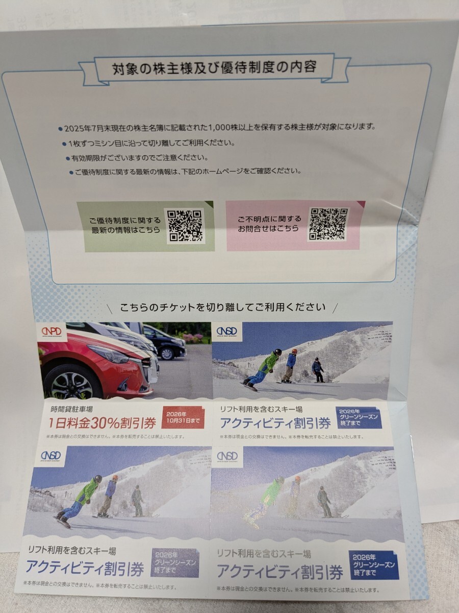 日本駐車場開発 株主優待 2025.7月期 スキー 場 駐車場 那須りんどう湖 割引券 電子チケット 冊子 リフト 那須ハイランドパーク