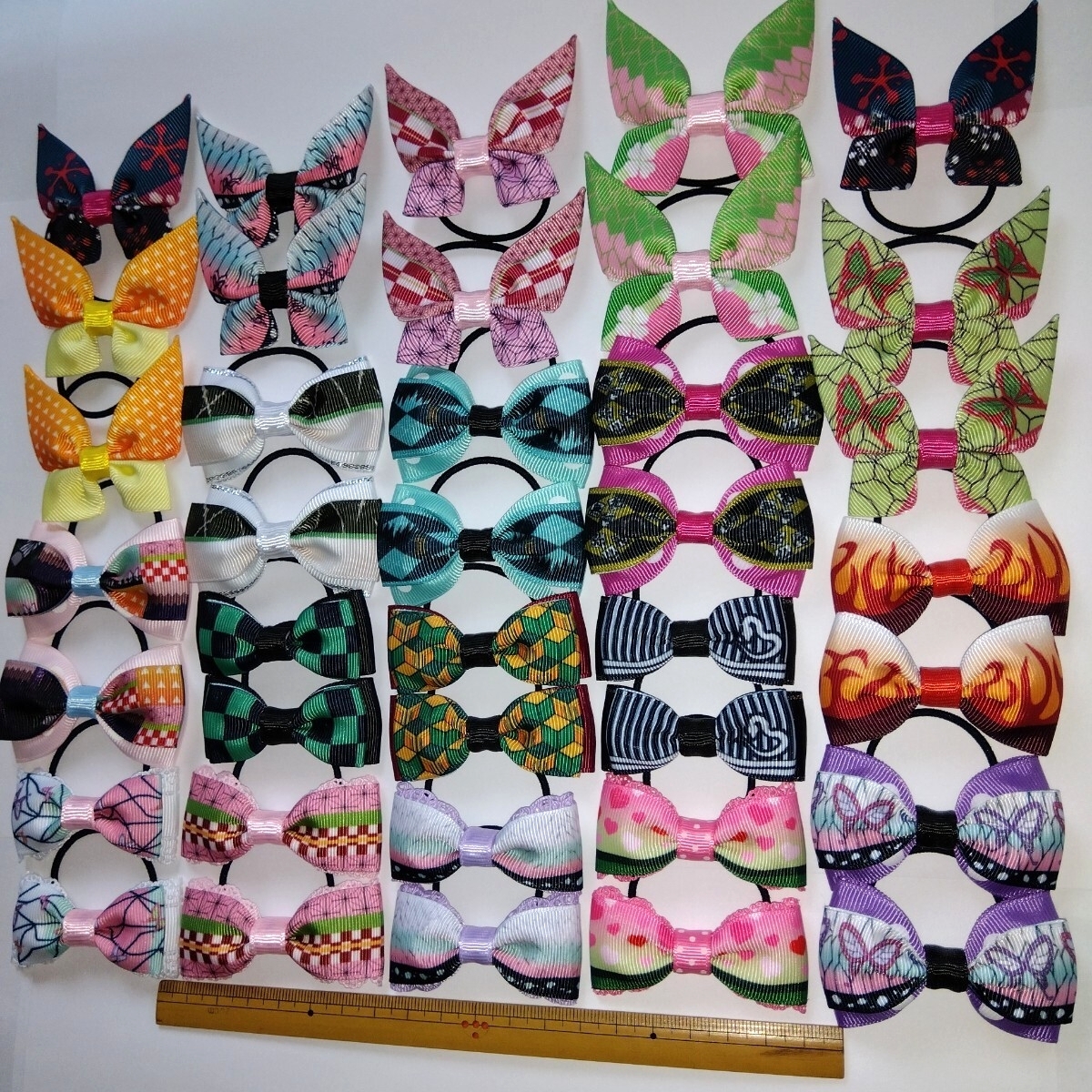 セール★B★ハンドメイド★ヘアゴム★大量★セット★鬼滅の刃★グログランリボン★リボン★25ミリ★38ミリ★ミニゴム★蝶々