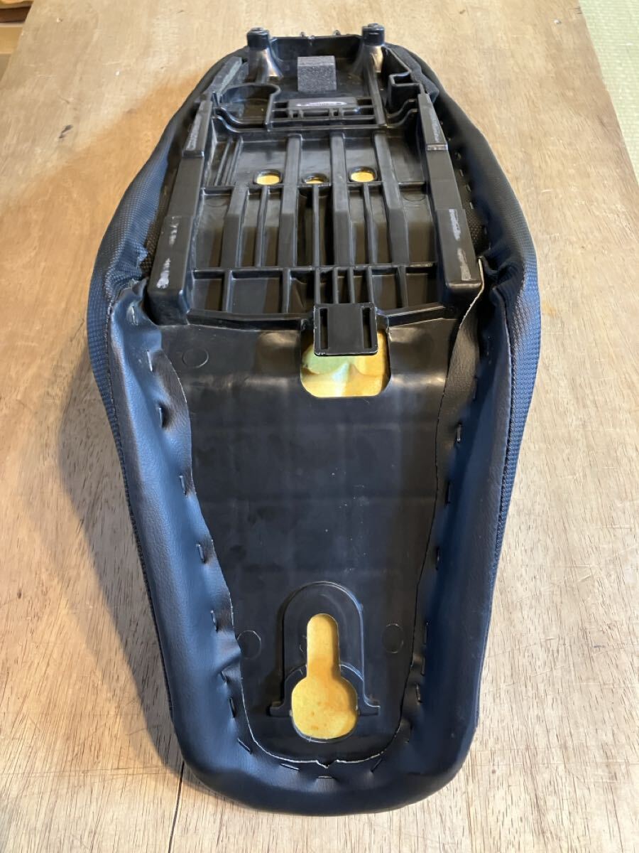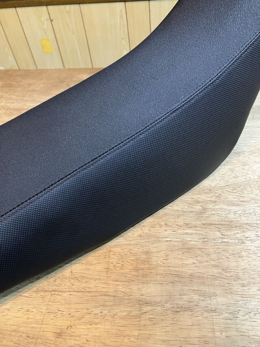 当方も中古で購入したので詳しいことはわかりませんが、純正よりはシートが厚くて足つきは悪くなります。座面はノンスリップな感じで、内部のウレタンも硬めです。