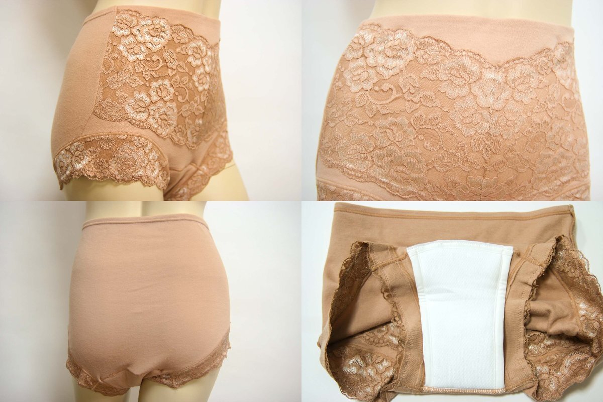 ・裏地には吸水性に優れた吸水パッド(幅:約8~12cm×全長:約17cm)が装着されており、尿漏れにも対応した失禁用の安心ショーツです。
