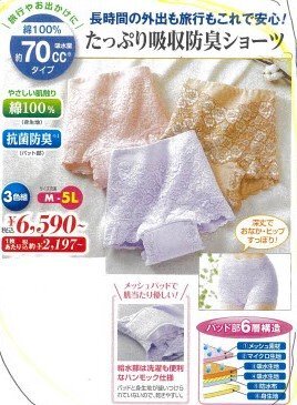 ・お腹すっぽり深履きタイプで【たっぷり吸収&防臭】の快適・安心ショーツです。