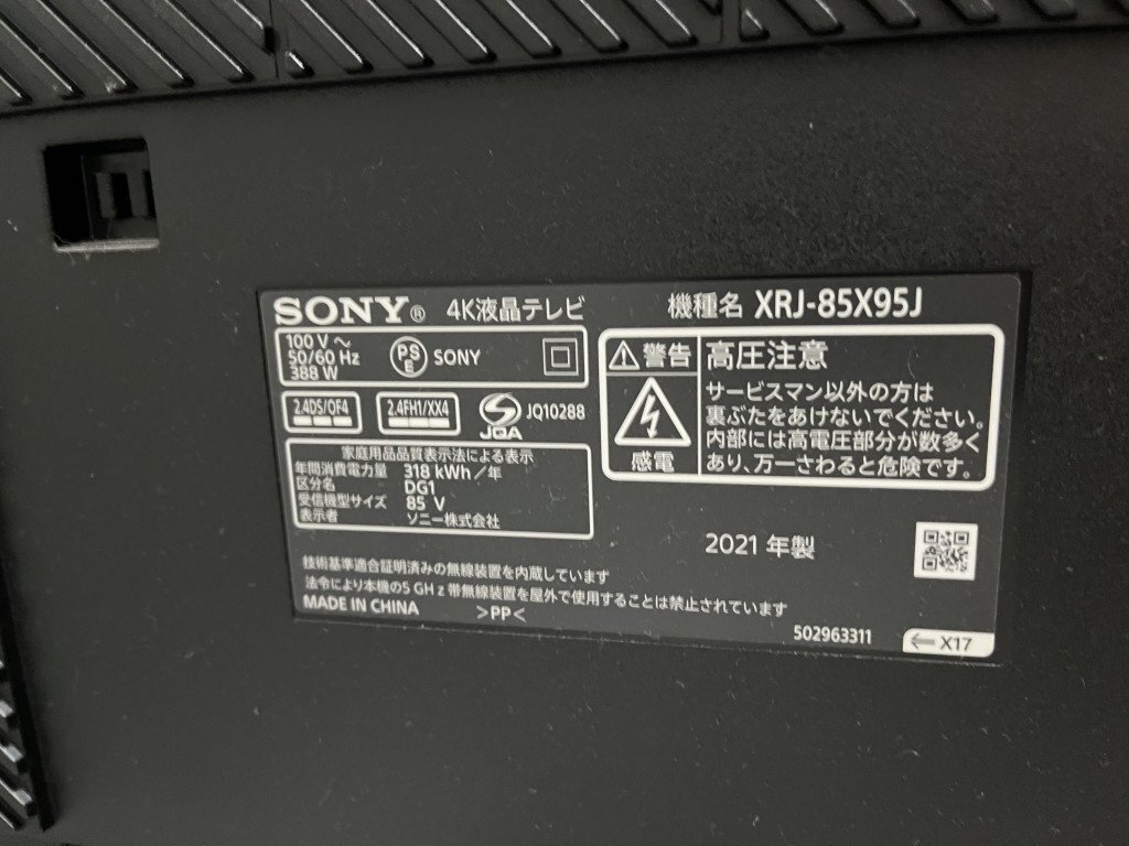 ◆【通電OK】SONY XRJ-85X95J 2021年製 85インチ液晶テレビ ※リモコン・脚無し 現状品 OG203443