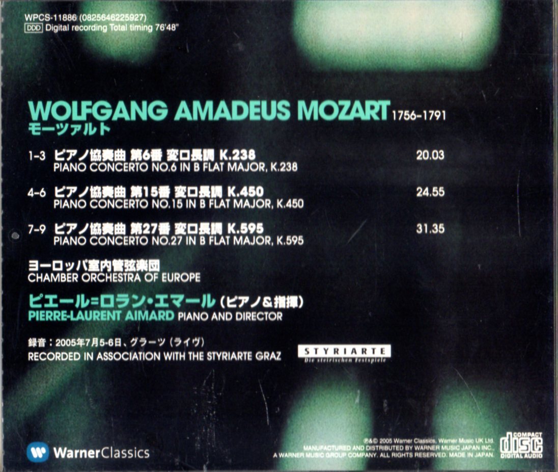 CD (即決) モーツァルト/ ピアノ協奏曲6;15;27番/ pf.ピェール=ロラン・エマール他(送料シングル4枚180円)