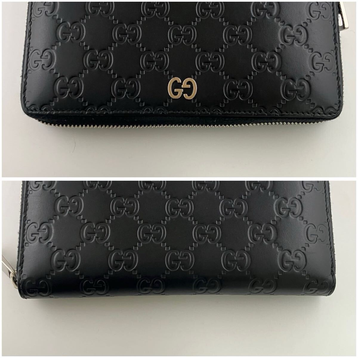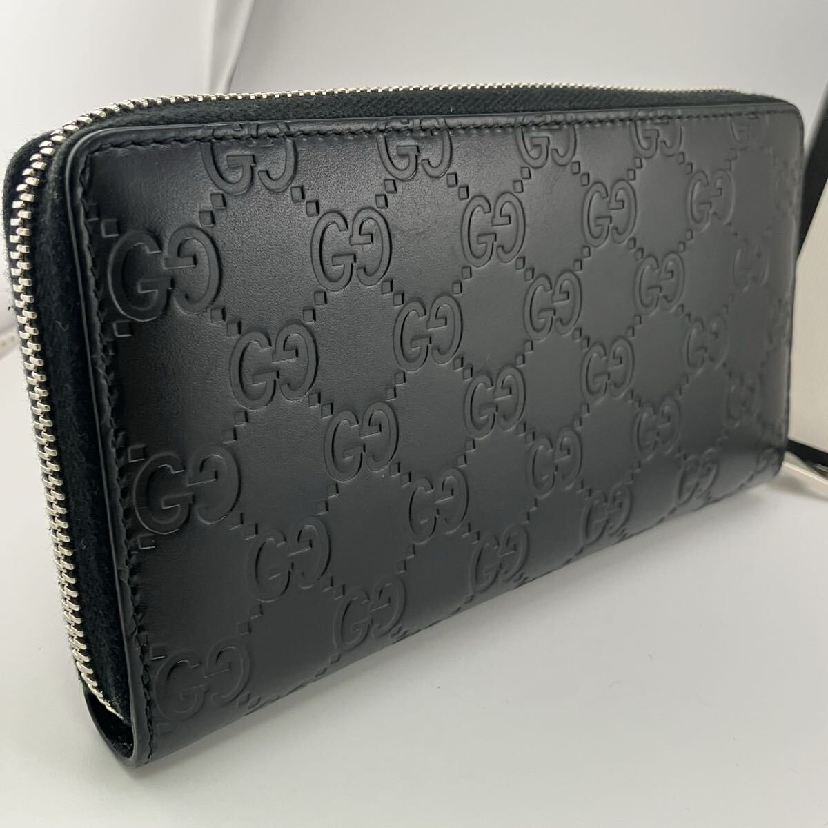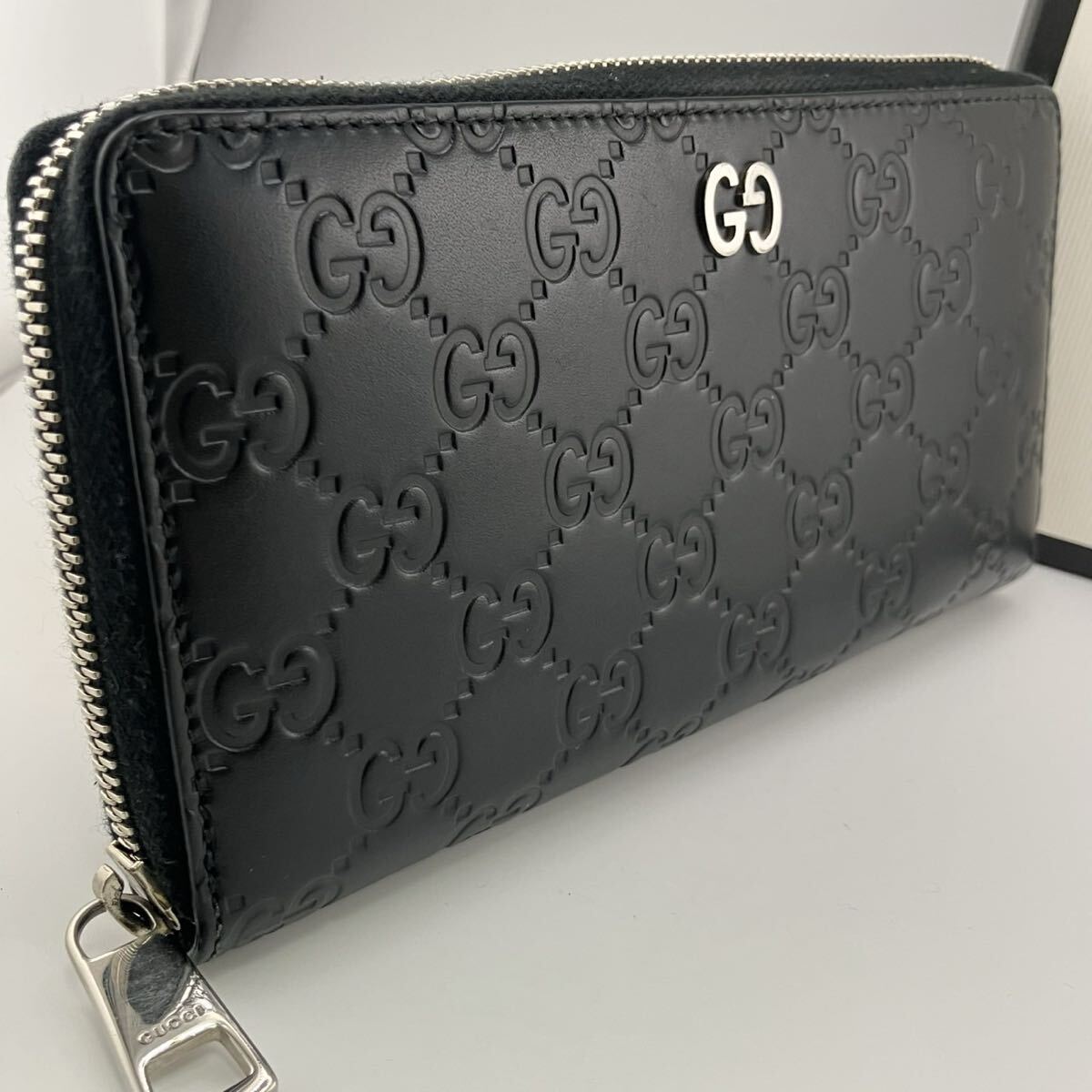 現行◆極美品◆GUCCI グッチ 長財布 GGロゴ GGエンボス シマ ドリアン ロングウォレット インターロッキング ブラック シルバー メンズ