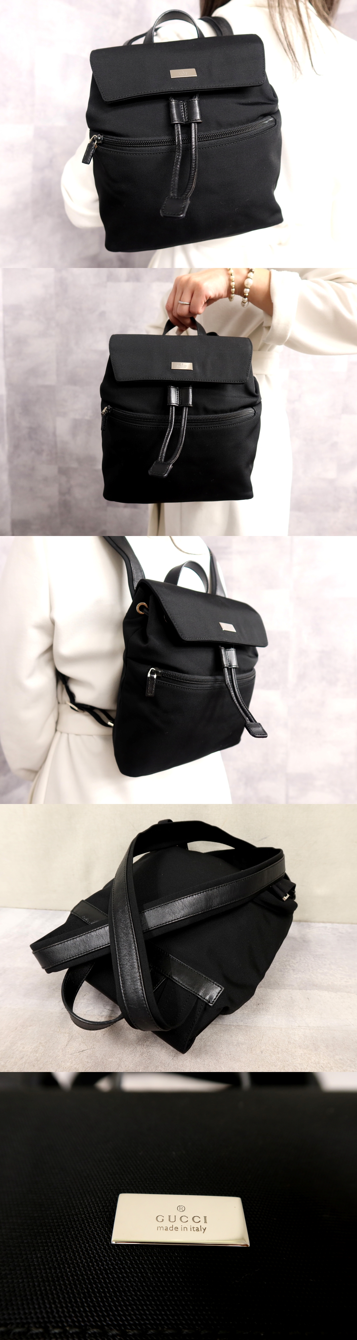 Product name: ●超美品●GUCCI グッチ●ロゴプレート●キャンバス カーフ レザー 本革●リュックサック●黒●シルバー金具●イタリア製●かばん●Js64730