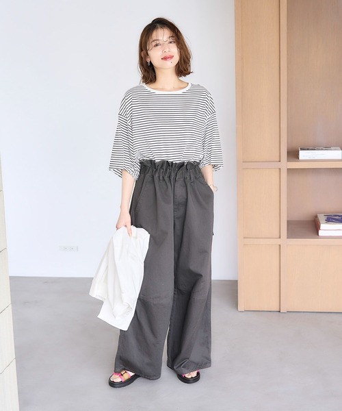 参考商品名:USAコットンタックパフスリーブTシャツ【WEB限定カラーあり】