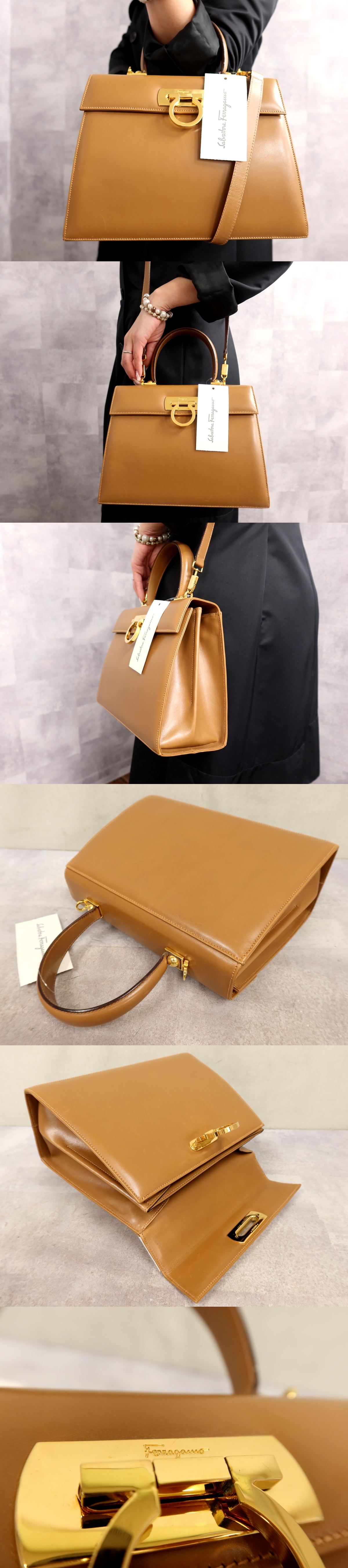 Store ●超美品●Salvatore Ferragamo フェラガモ●ガンチーニ●カーフ レザー 本革●2way ハンド バッグ●キャメル●ゴールド金具●Js65969