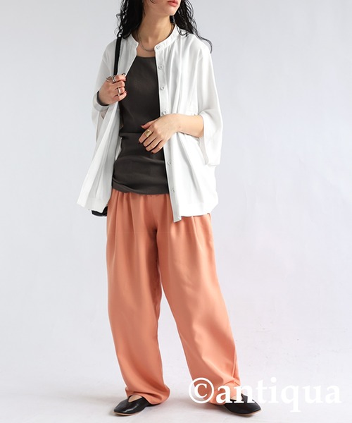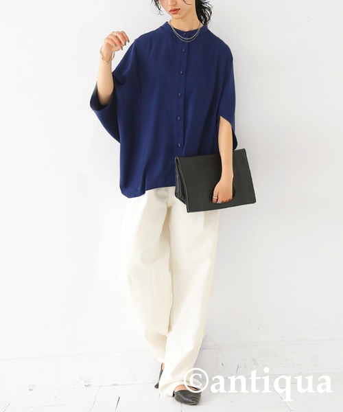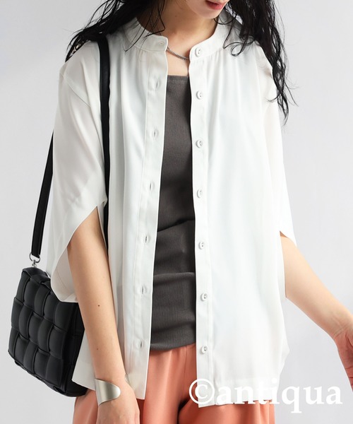 キーワード:ブラウス シャツ レディース スタンドカラー 長袖 無地 夏 春