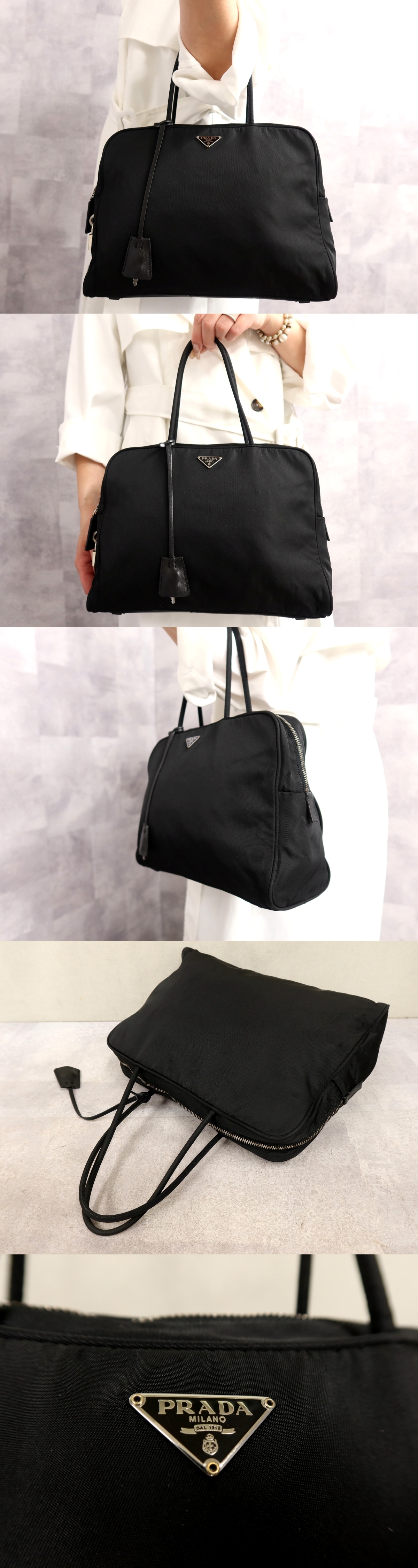 Product name: ●超美品●PRADA プラダ●三角ロゴプレート●ポコノ ナイロン●ハンド バッグ●黒●シルバー金具●腕掛け●イタリア製●かばん●Js66748