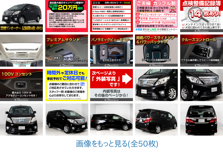 Product name: 【諸費用コミ】:平成26年 アルファードHV SR-C 4WD 記録14枚 禁煙1オーナ黒革