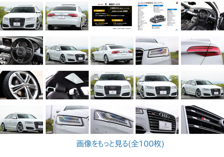 車両状態コメント年式や距離からでは考えにくいコンディションの良さです。外装に目立つような傷はなく、ホワイトボディが光り輝いています。後期モデルでマトリクスLEDを装備し、古さをまるで感じさせないあたりもさすがにアウディのフラッグシップです。内装も特筆すべきダメージはなく、多少の使用感、薄汚れ程度です。