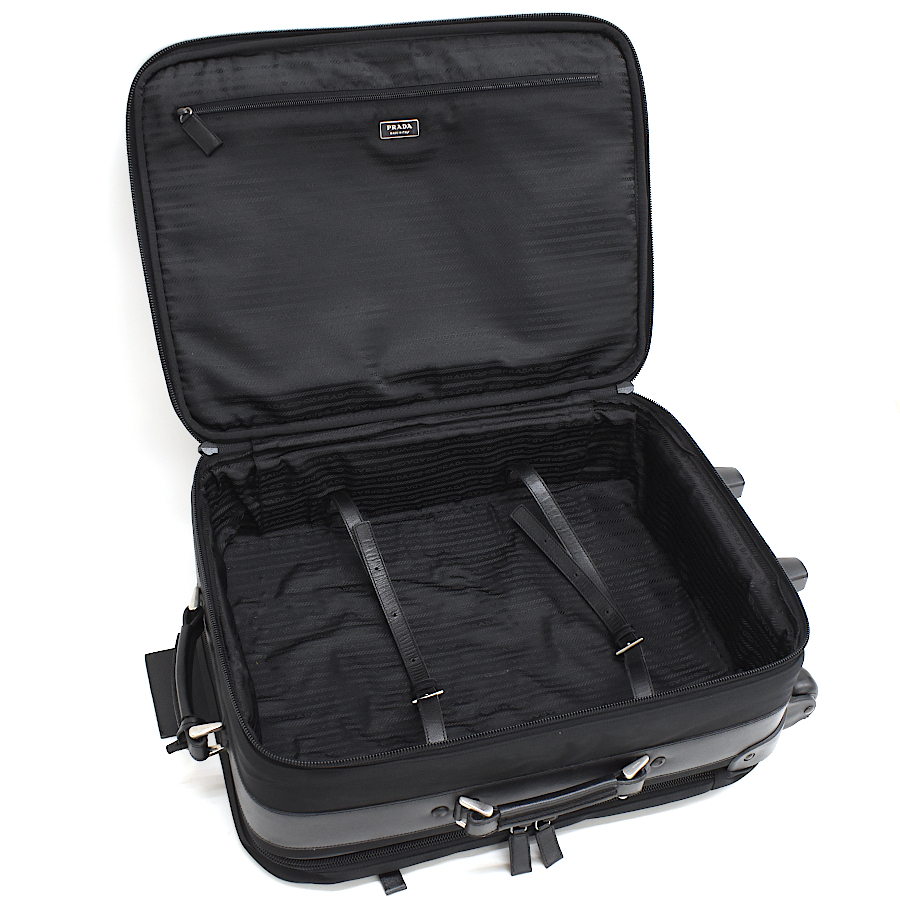 プラダ トロリー スーツケース キャリーバッグ ナイロン レザー ブラック トライアングルロゴプレート 2輪 PRADA