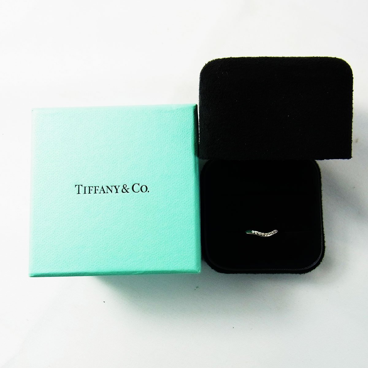 新品仕上げ ティファニー Pt950 カーブドバンドリング 9Pダイヤ 約8号 縦幅:約2.2mm 約3.3g プラチナ 指輪 Tiffany&Co.■