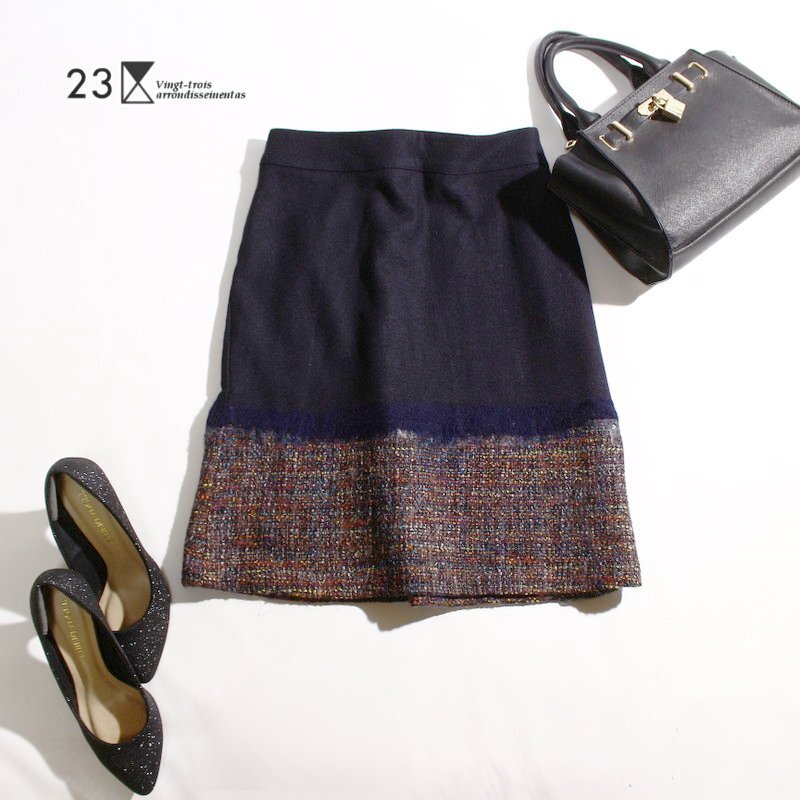 Product name: 美品 23区 株) オンワード樫山 冬 高級感 お洒落 裾ツイード 切替 Aライン ウールスカート 11号 40 ネイビー 紺 ツイード ミセス オフィス