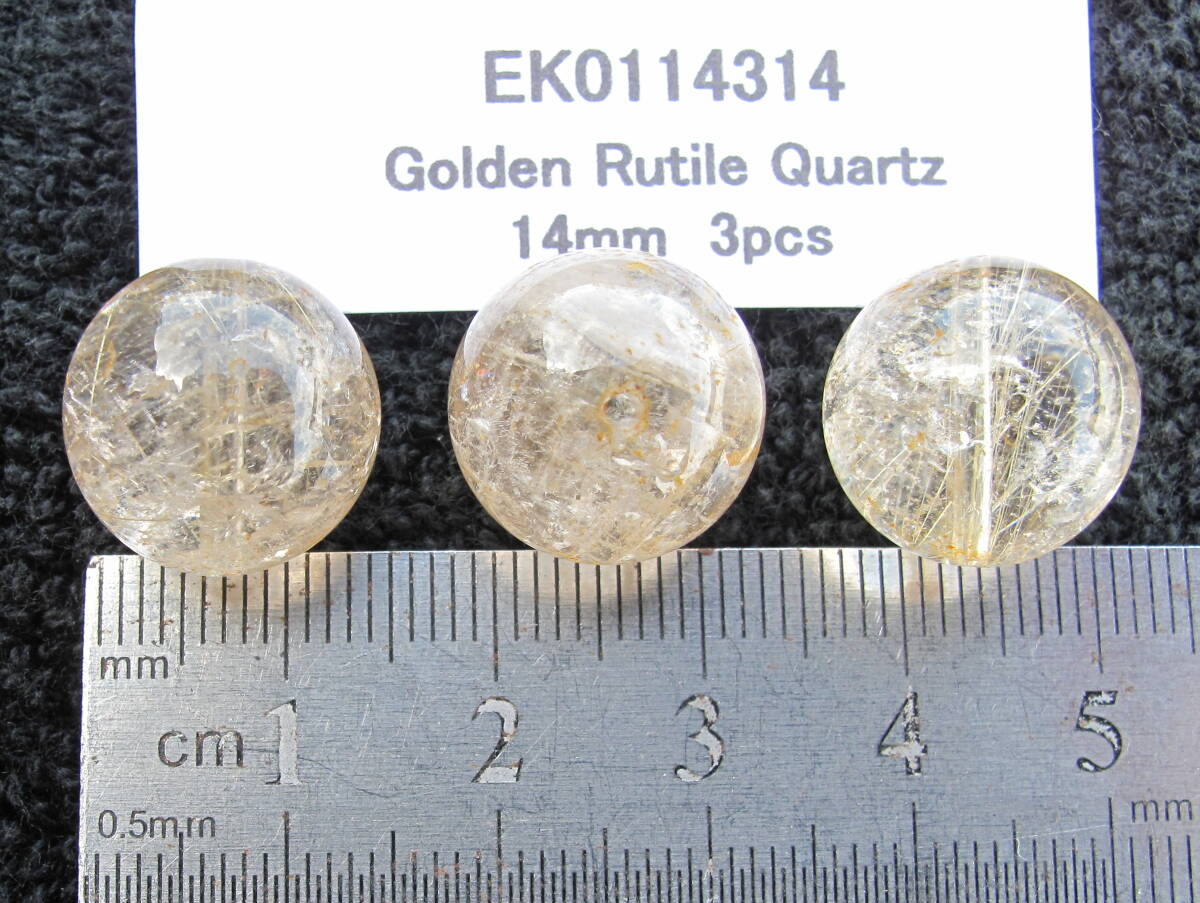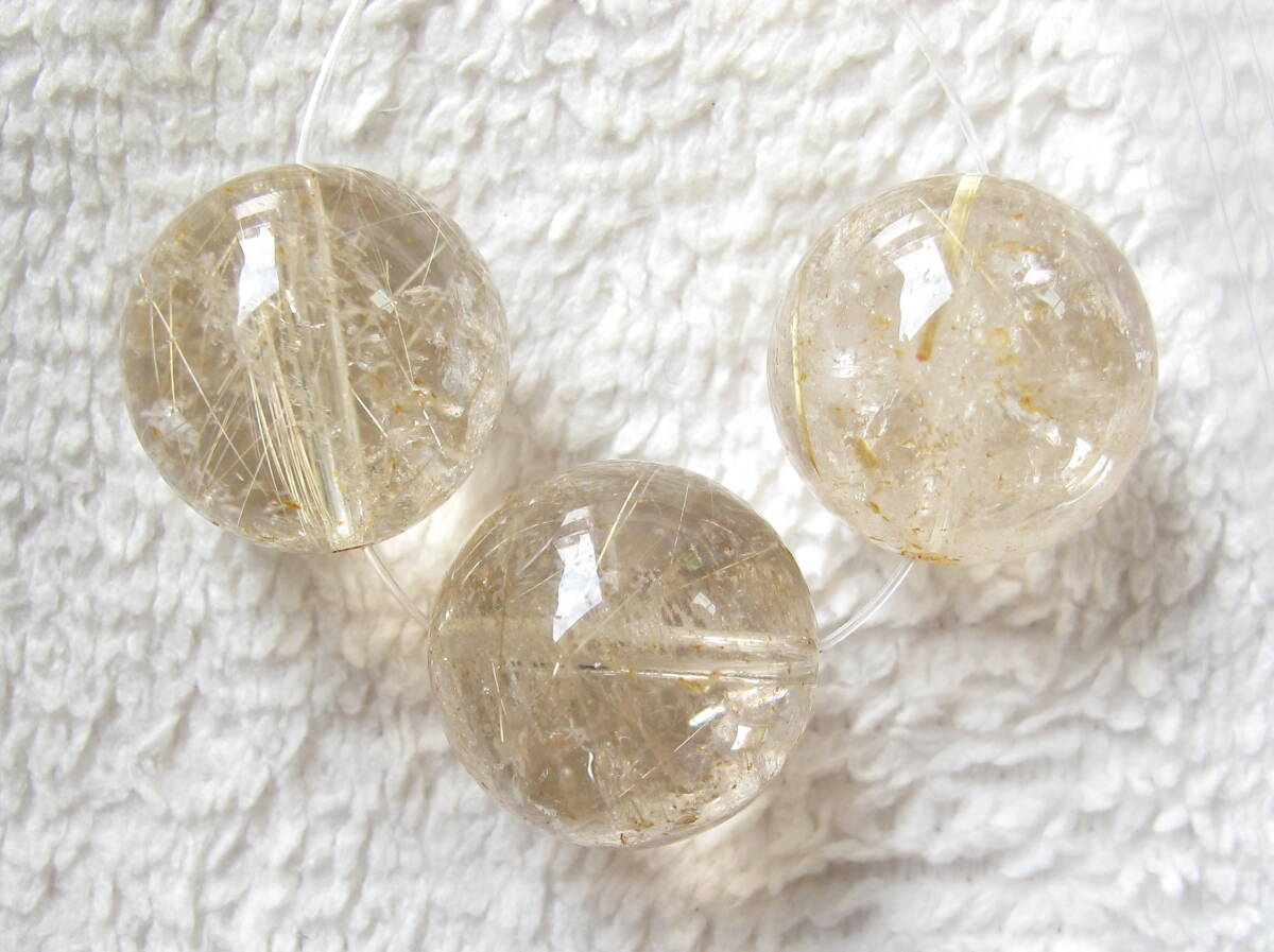自然光撮影★天然石&ゴールドルチルクォーツ▲丸玉!14mm!3粒!!