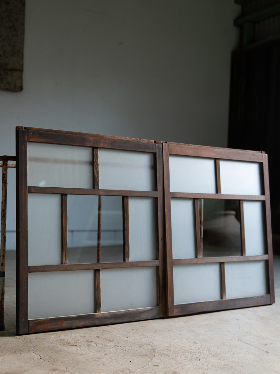 小さめ お多福窓 2枚組 昭和初期/幅580 高672 厚30/おたふく窓 木製小窓 木製窓 木製建具 引戸 古建具 古民家 ヴィンテージ アンティーク