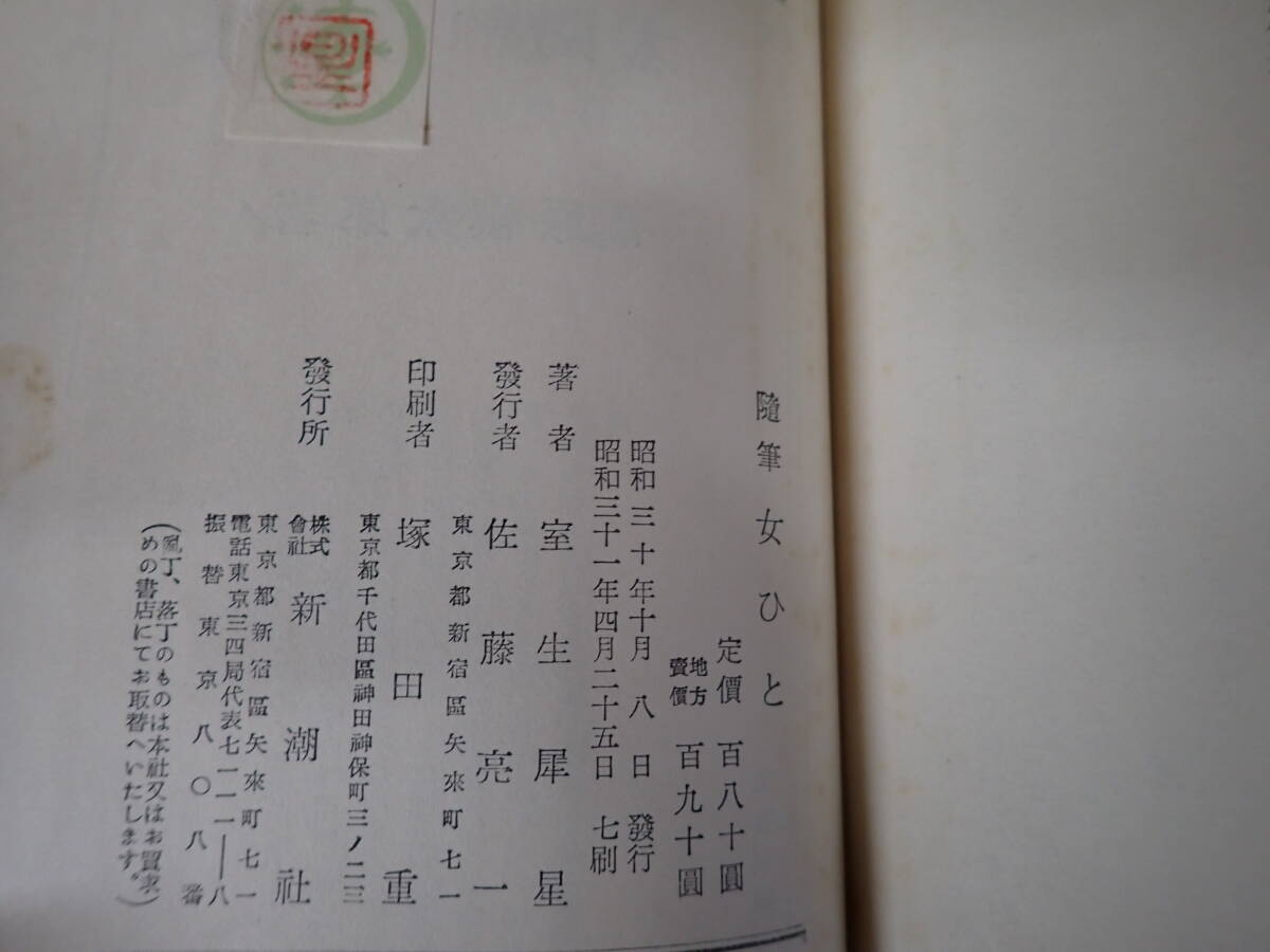 Product name: T5Bё 随筆 女ひと+續 女ひと まとめて2冊セット 室生犀星 新潮社 昭和31年発行