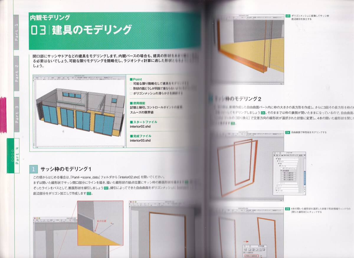 3DCGソフトウエアShadeの使い方を解説したガイドブック、建築関連に特化した内容。最終的には建築の外観および内観パースを完成させる内容となっている