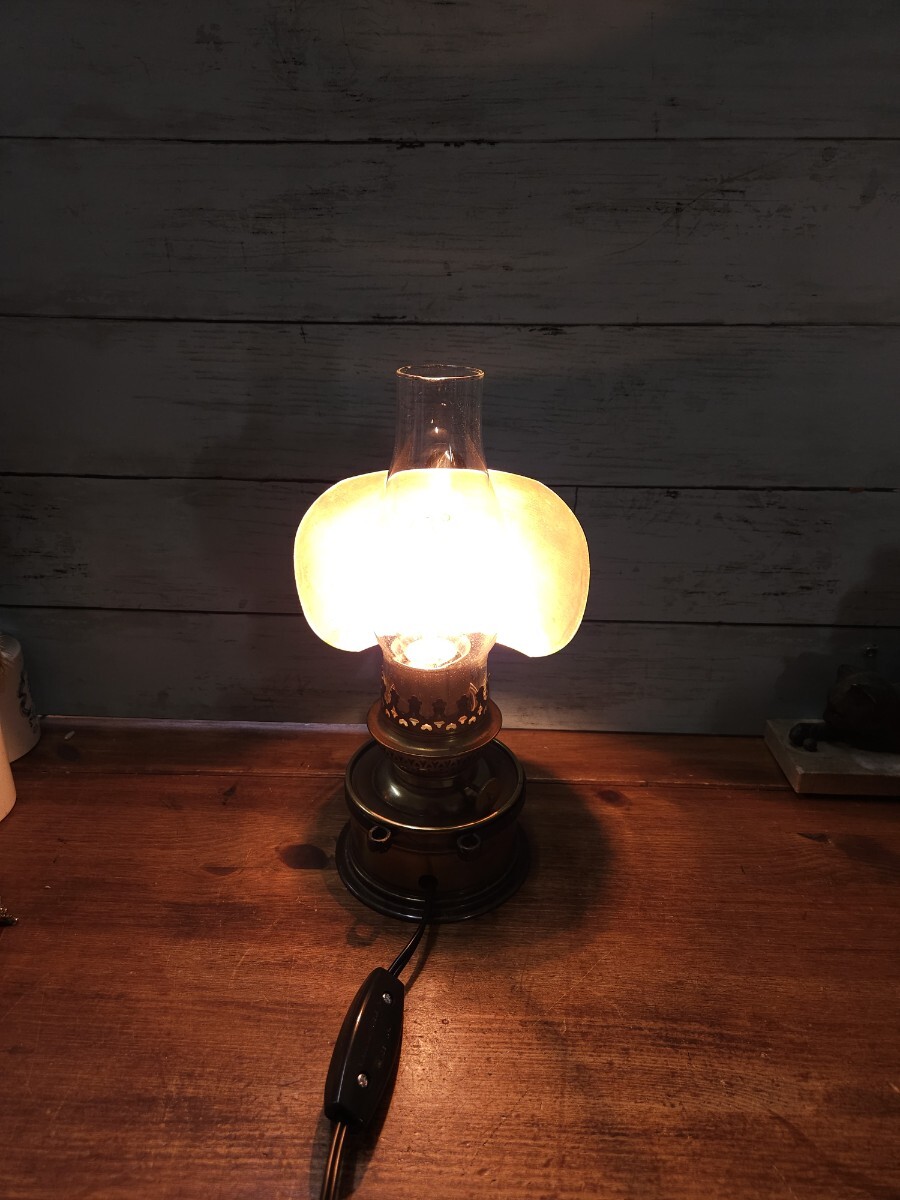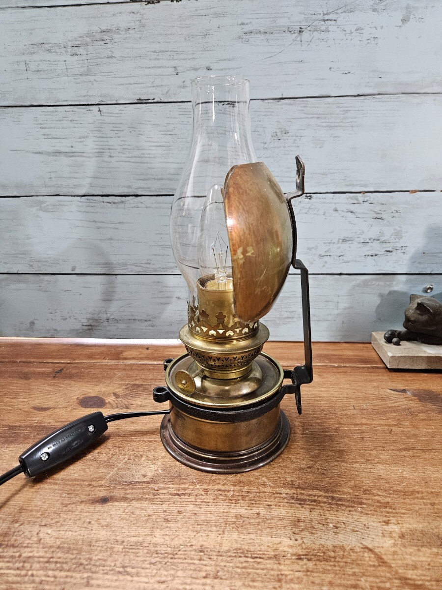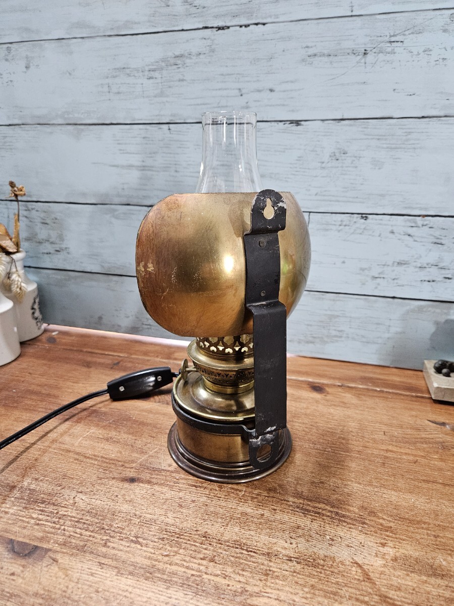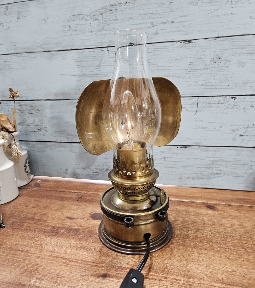 Product name: フランスヴィンテージ ランタン型のスタンドライト 真鍮製 シェード付き 卓上照明 フレンチ インダストリアル アトリエ 工房 B47