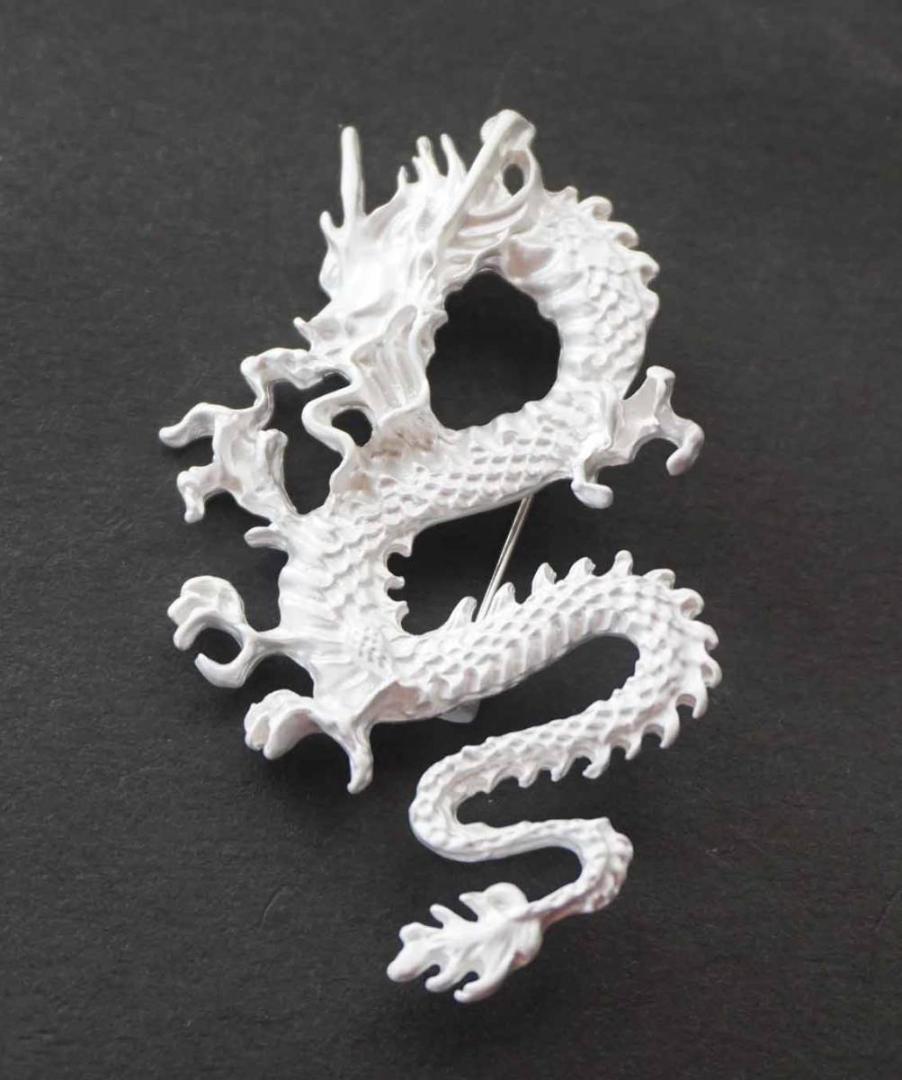 【白DX昇龍神】新品『ホワイトドラゴン◎DRAGON 龍』■開運☆運気■Nature ロマンチック 高級感 金属 ピンバッジ バッチ ブローチ激渋
