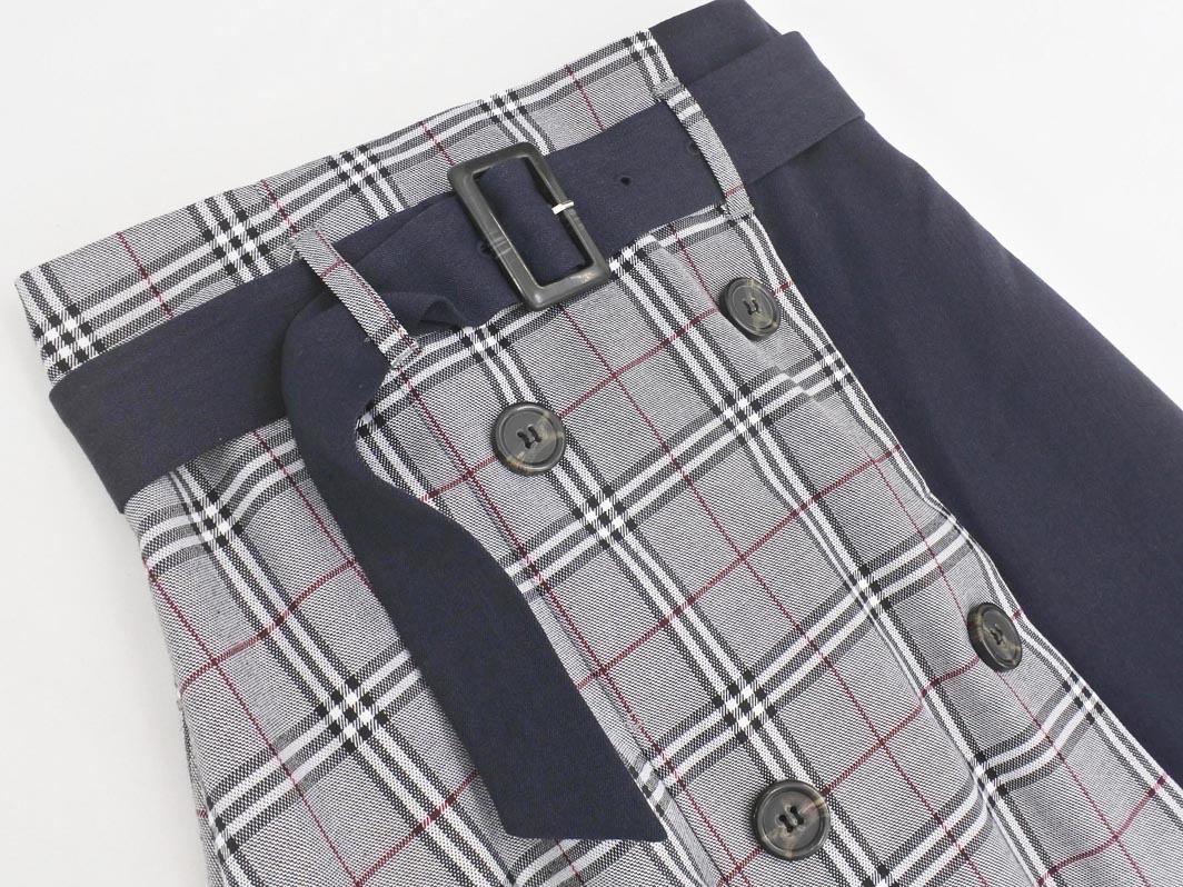 Product name: one way ワンウェイ ベルト付き チェック 切替 ロング スカート sizeM/グレーx紺 ◇■ ☆ fcc7 レディース