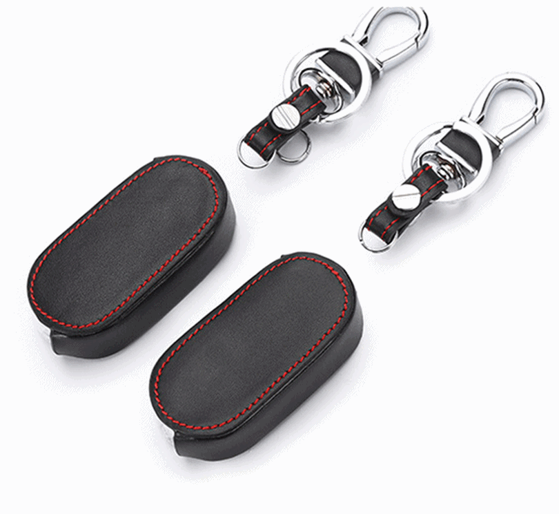 赤いステッチがチャームポイントの黒革キーカバーです。