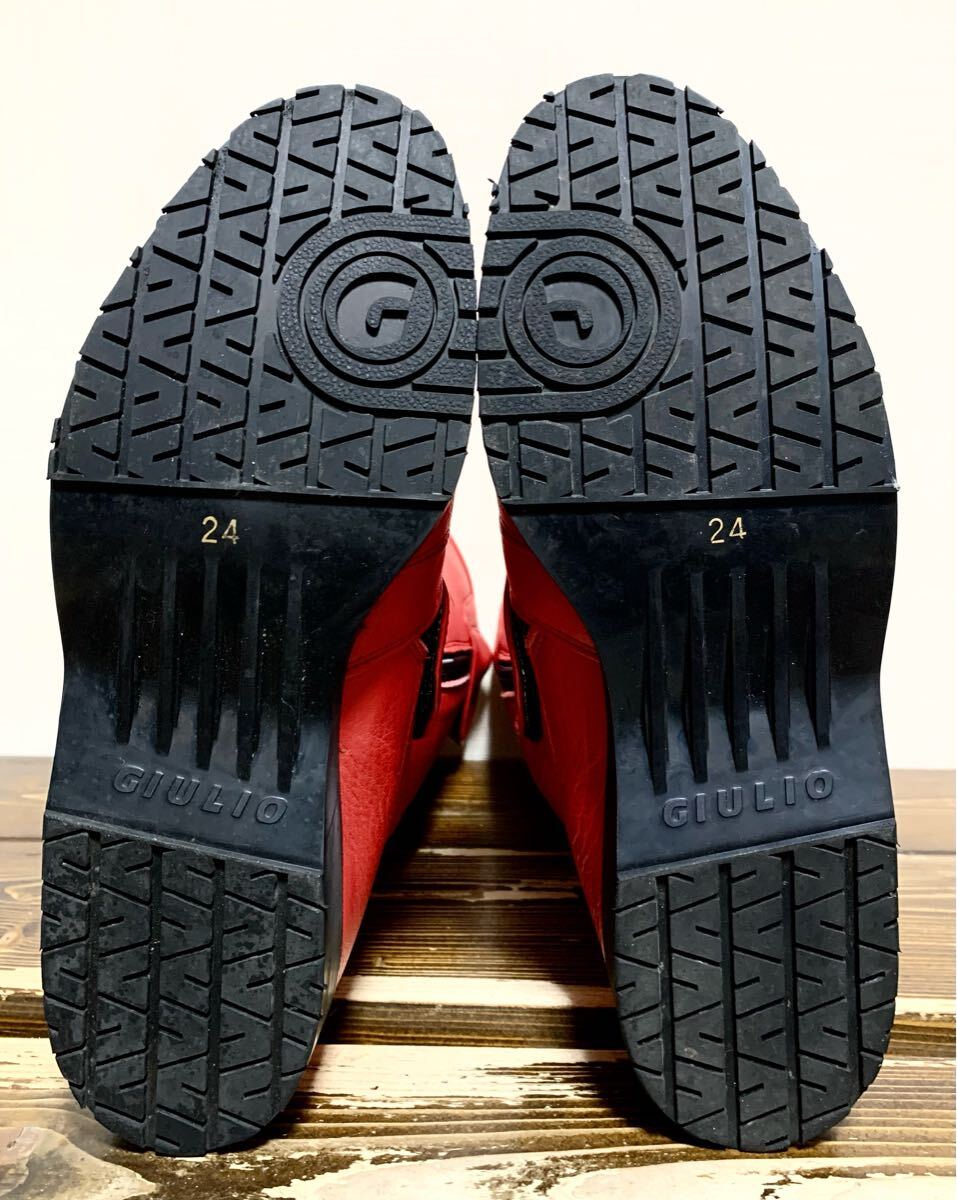 miss GIULIO(FET極東 プロデュース).レザーライディングブーツ(赤)、サイズ24(レディース)です。