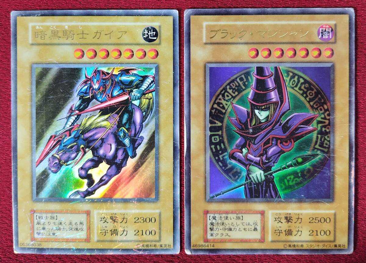450円スタート!! 暗黒騎士ガイア + ブラック・マジシャン 初期ウルトラレア2枚セット ◆深傷品E