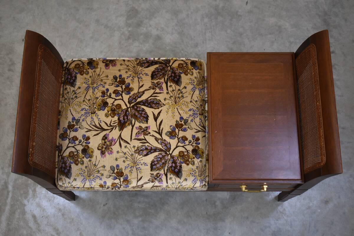zyt2156ジ maruni/マルニ木工 地中海 テレフォンベンチ モケット地 籐編み/ラタン 英国アンティーク調/ヴィンテージ家具/1980年代 70508-14 の投稿です。