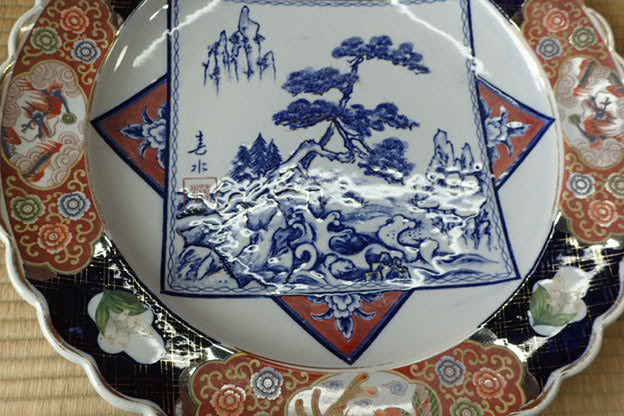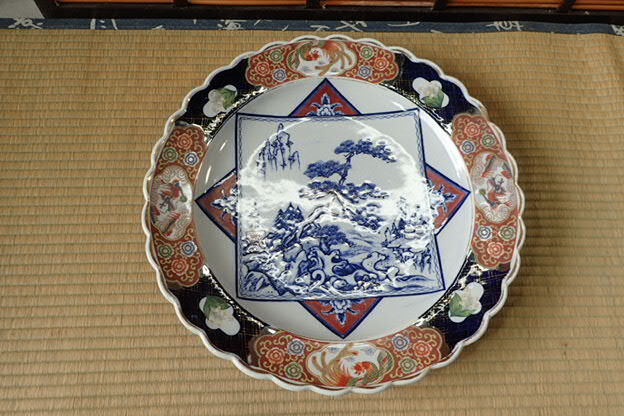 Product name: 34-89 金彩色絵 大皿 飾り皿 萬光