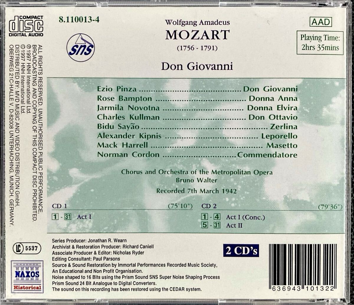 Product name: 2CD/ モーツァルト:ドン・ジョヴァンニ 全曲 / ワルター&メトロポリタン歌劇場管 / 1942年