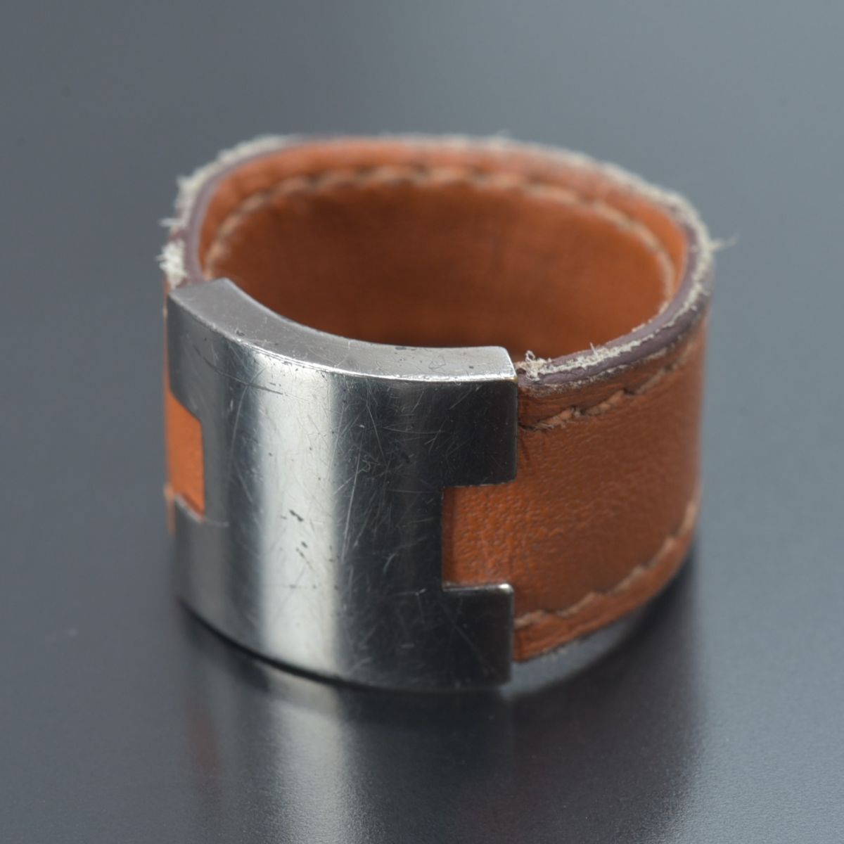 HERMES エルメス ルーリーリング 23号 XL レザー ジルバー ブラウン Hロゴ 袋付き 指輪 アクセサリー ジュエリー #N※0522-34/TLk.e
