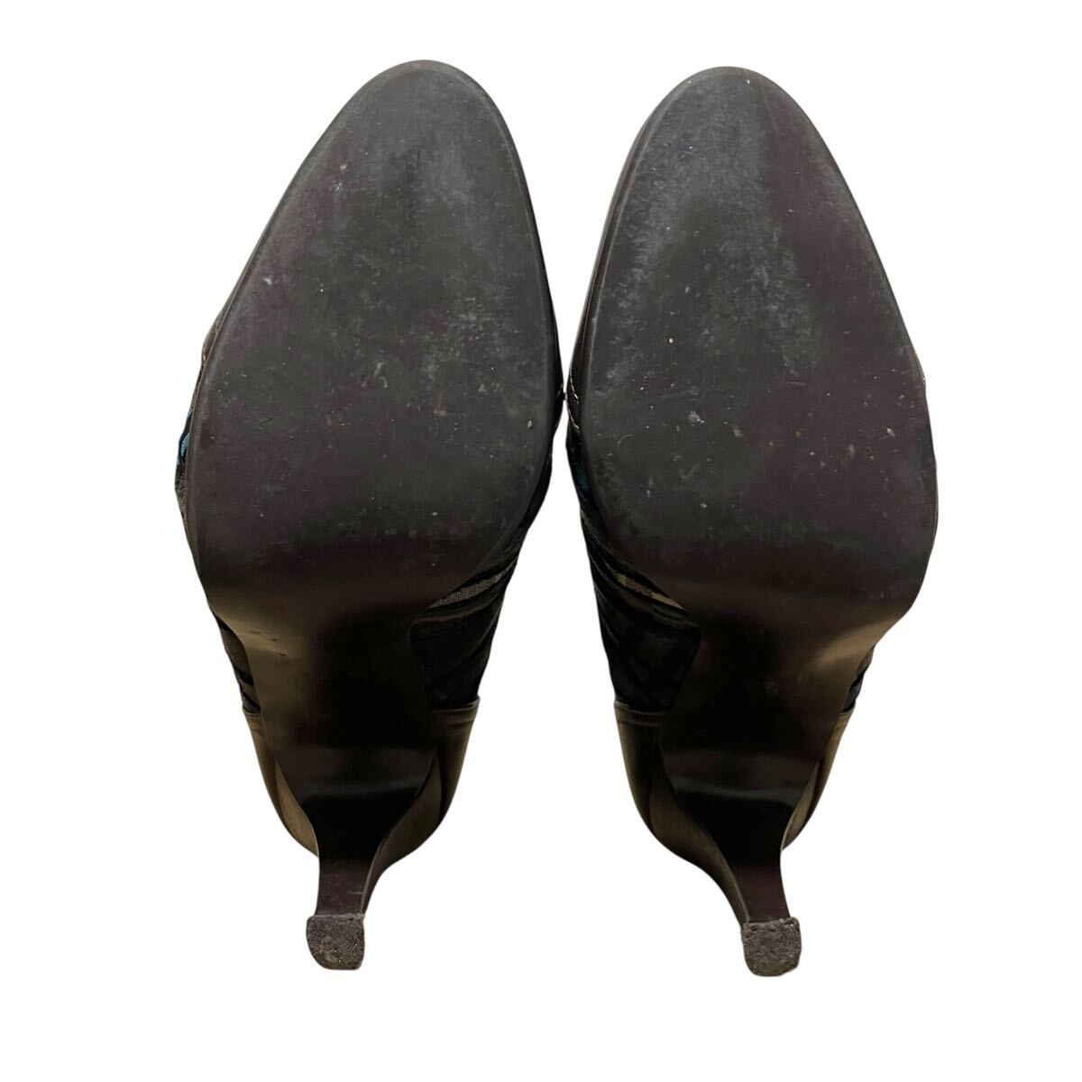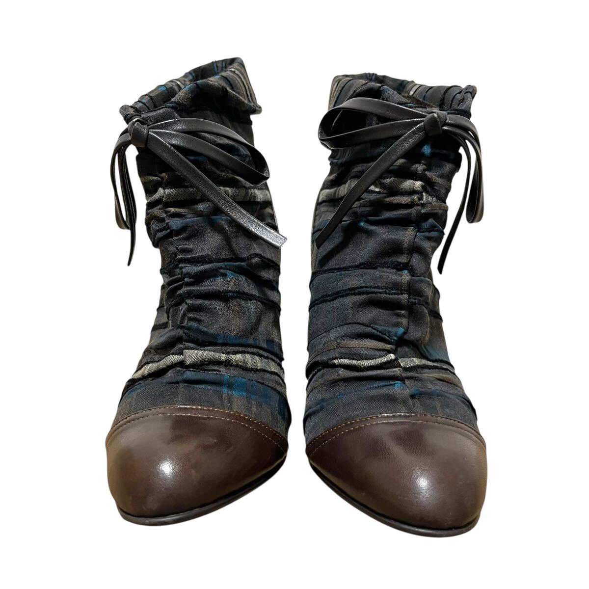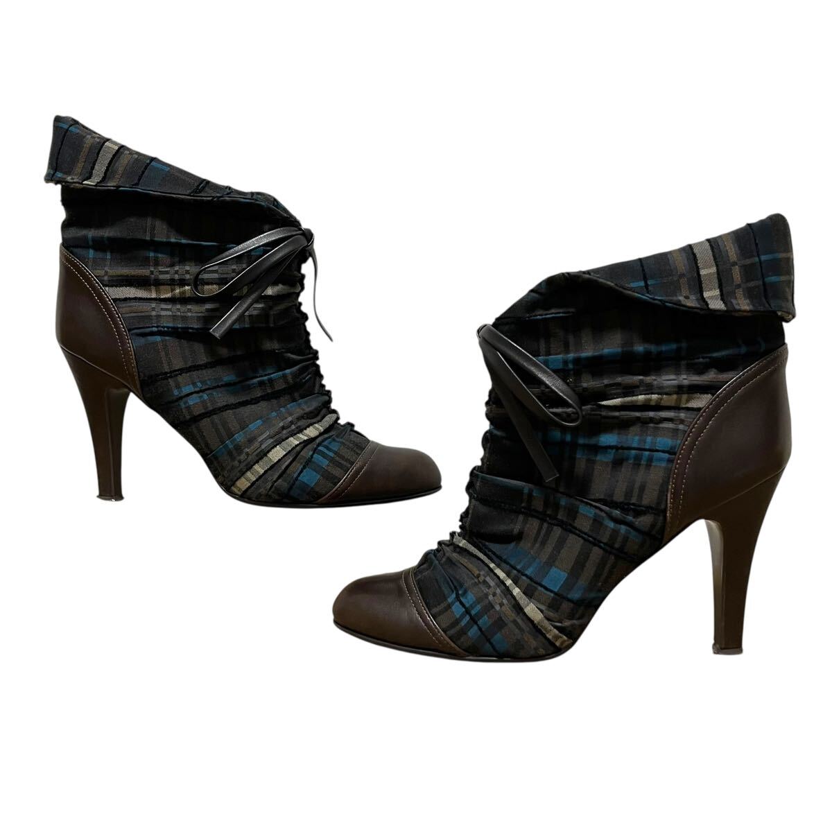 ※BT3 DIANA Romache ダイアナロマーシュ ショートブーツ レザー ブラウン×チェック リボン 日本製 24cm