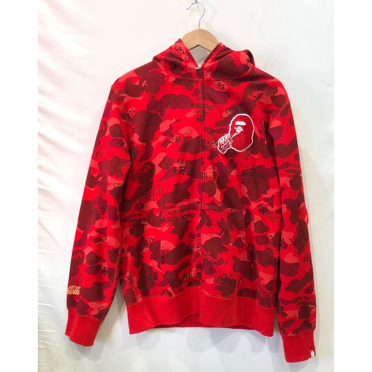 ts20250531【A BATHING APE】アベイシングエイプ × Coca Cola ジップパーカー XLサイズ コットン レッド コカコーラ 001ZPC731922X