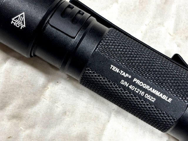 ストリームライト社独自の「10タッププログラム」により、工場出荷時の「高→ストロボ→低」のスイッチモードを、「高のみ」や「低→高」へスイッチのタッピングのみで変更することができます。