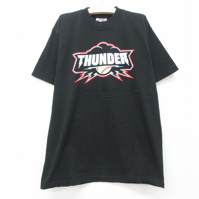 Product name: 古着 マジェスティック 半袖 ビンテージ Tシャツ キッズ ボーイズ 子供服 00s THUNDER 野球 コットン クルーネック 黒 ブラック 25jun06