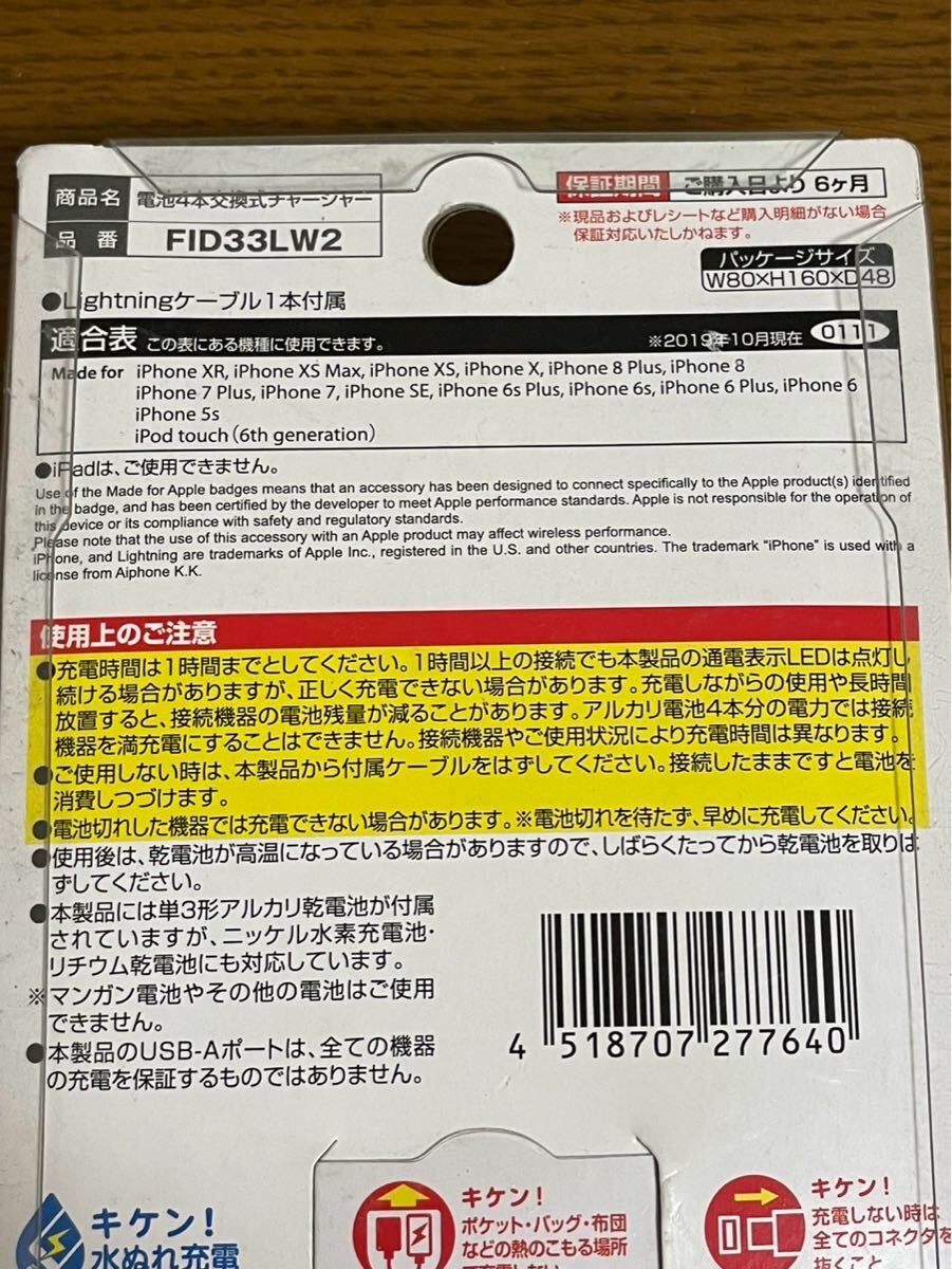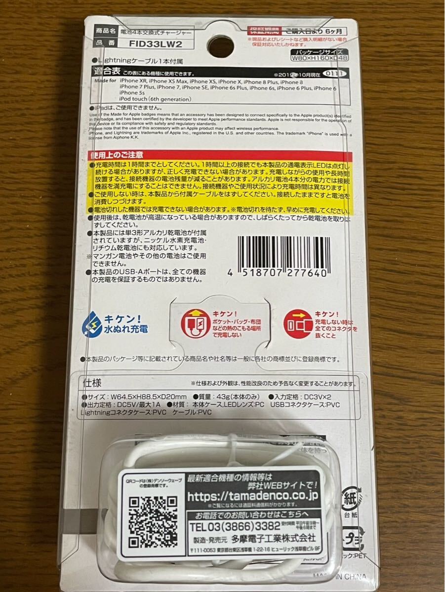 Product name: 未使用 ★ tama's 多摩電子工業 電池4本交換式チャージャー for Lightning iPhone iPad FID33LW2 スマホ 充電 ★ 52