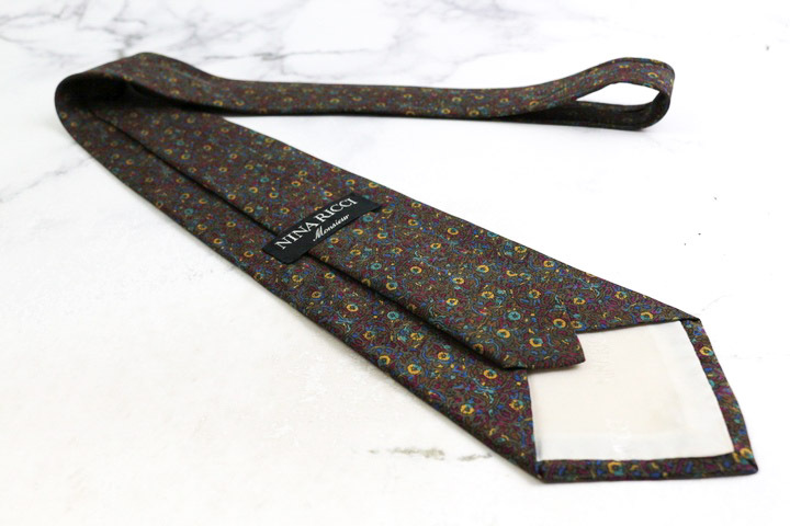ニナリッチ ブランド ネクタイ 総柄 花柄 リーフ柄 シルク PO メンズ カーキ NINA RICCI