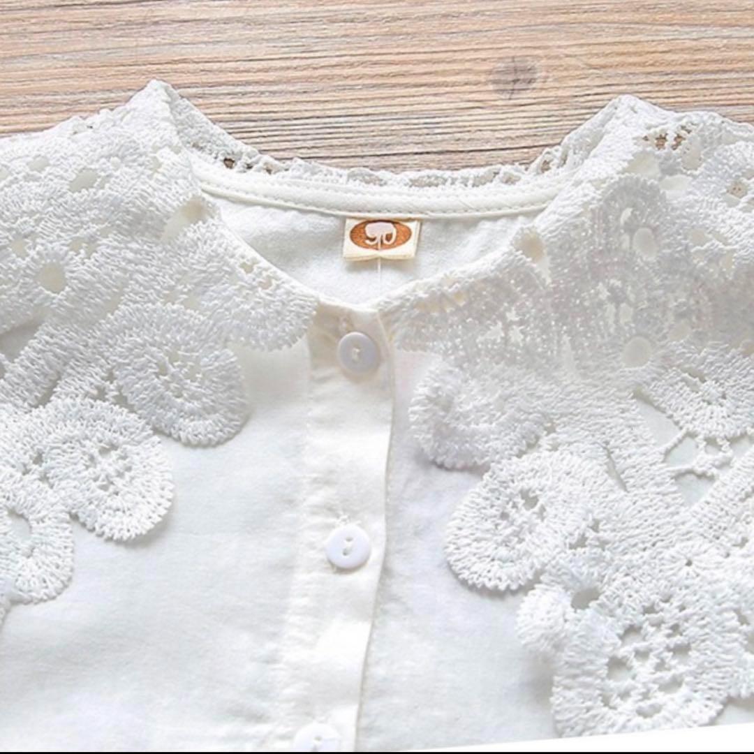 ◇一枚で着てもかわいいですが、カーディガンを重ね着したり、ワンピースやオーバーオール等と合わせていただきますとより襟の華やかさが引き立つのでオススメです♪