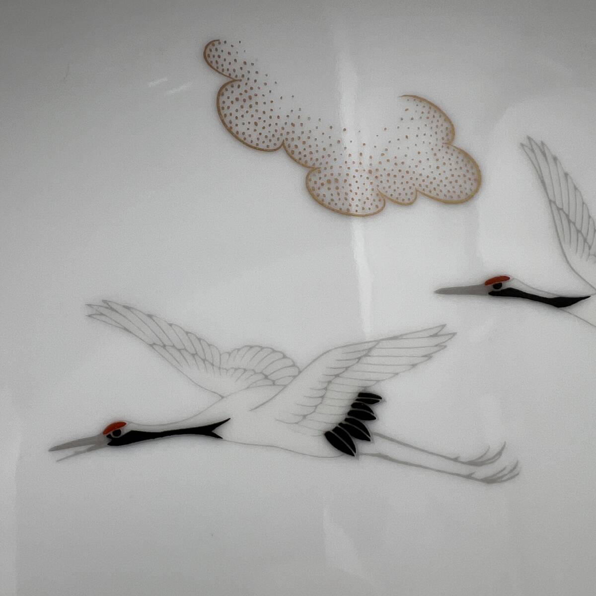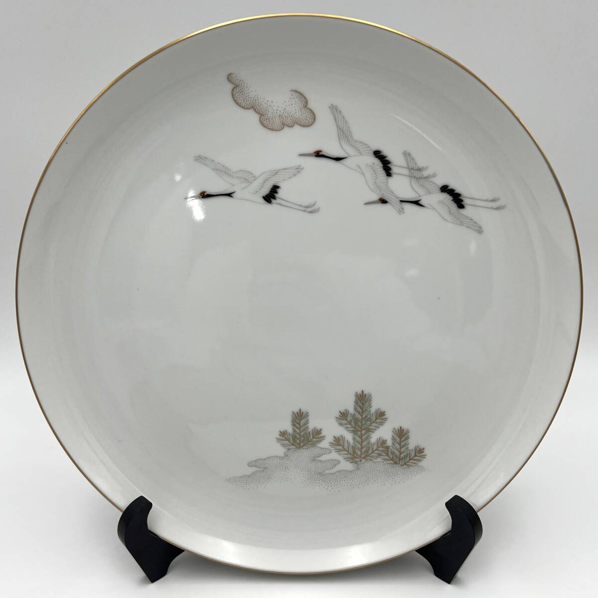 深川製磁 大皿 飾皿 鶴 松 雲 金彩 26cm 有田焼 [255137]