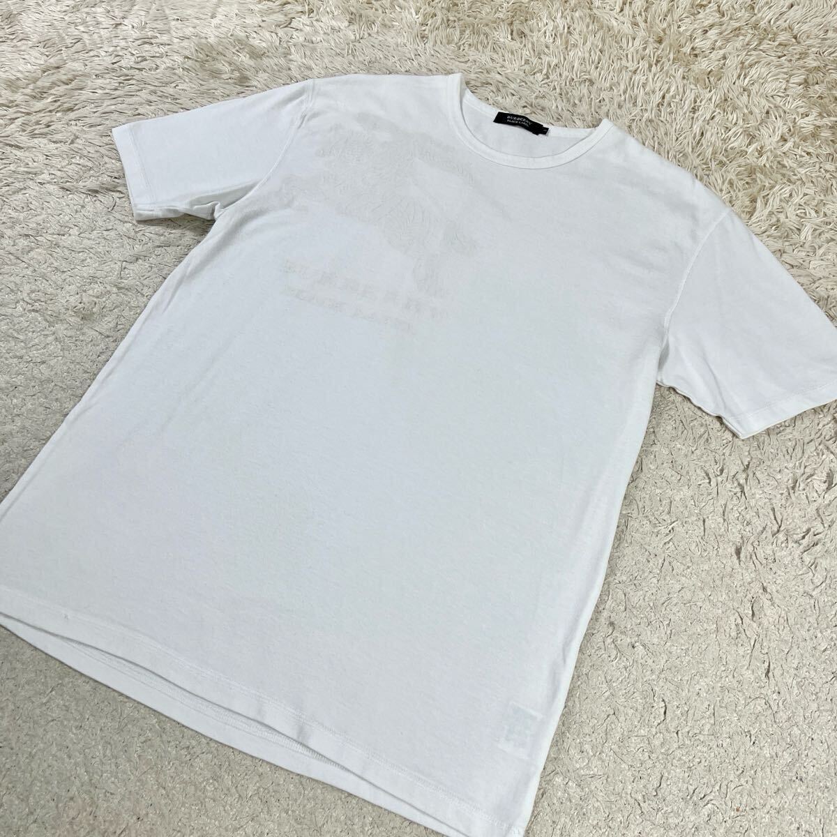 美品/希少3!! バーバリーブラックレーベル 同色ビッグ ホースロゴ Tシャツ カットソートップス 半袖 ホワイト 白 BURBERRY BLACK LABEL