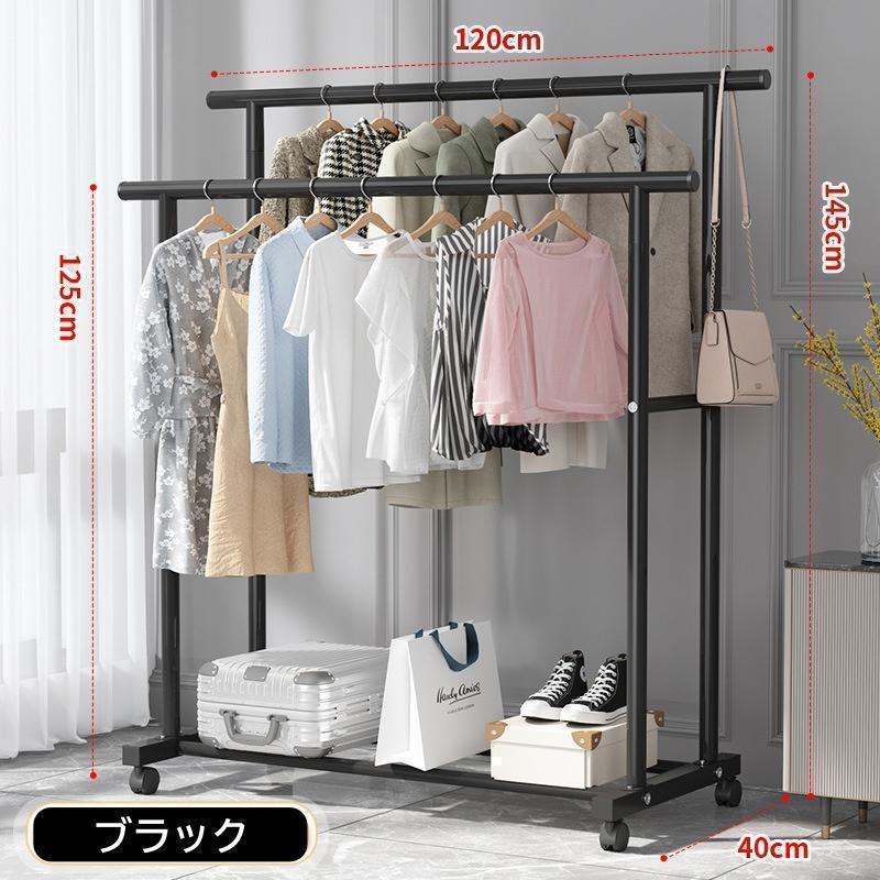 Product name: セール ハンガーラック ブラック 2段 キャスター付き 部屋干し 頑丈 訳あり品 アウトレット品 大容量 夏服 棚付き ワイド クローゼット