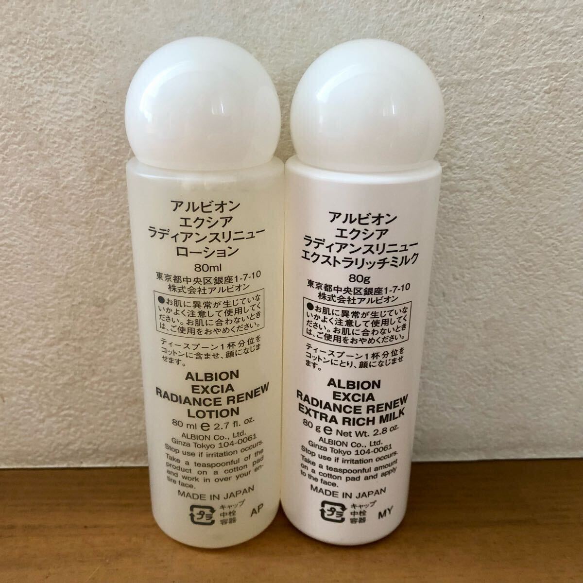 Product name: 【送料無料】アルビオン エクシア ラディアンスリニュー ローション 80ml、エクストラリッチミルク 80g 未使用
