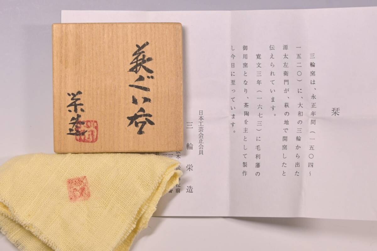 ●未使用と思われる 美品● 【マッジョーレ美術】 三輪栄造 萩ぐい呑 共箱 父に11代三輪休雪(壽雪) 本物保証