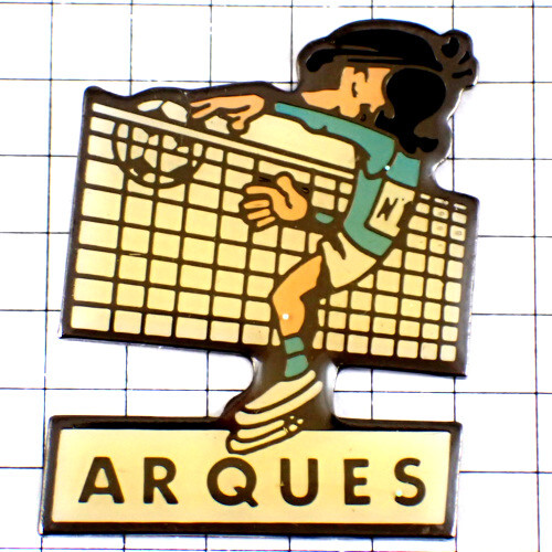 ピンバッジ・バレーボール黒い髪の選手アタック白い球◆フランス限定ピンズ◆レアなヴィンテージものピンバッチ