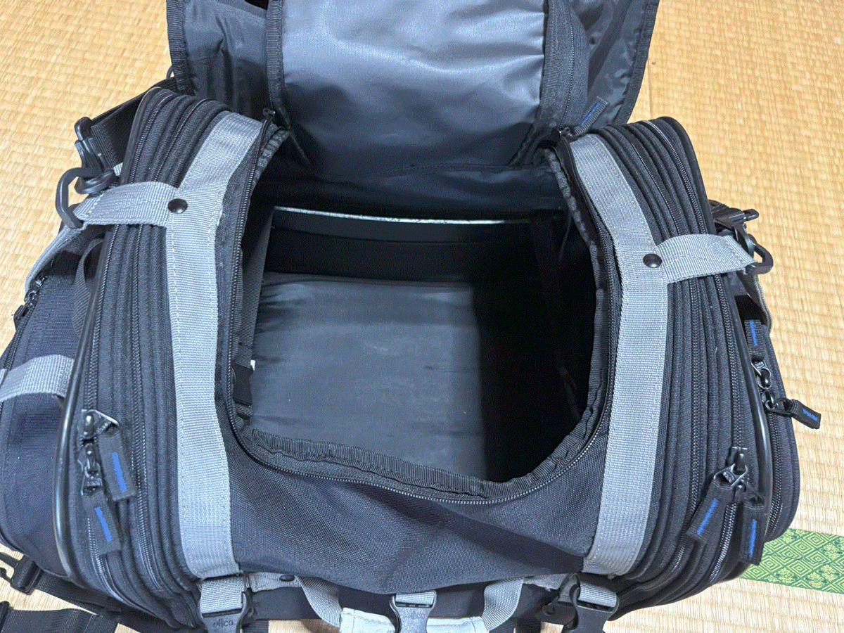 収納は左右に10㎝程拡張されかなりの荷物が収納できます。