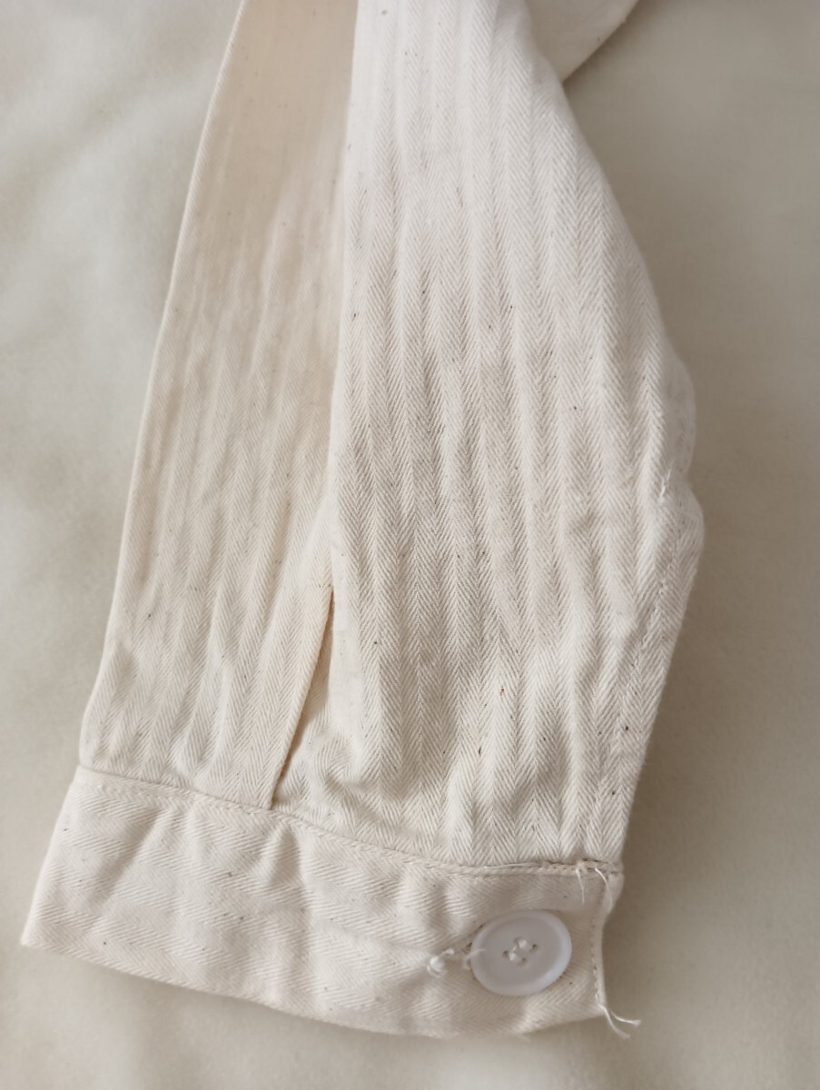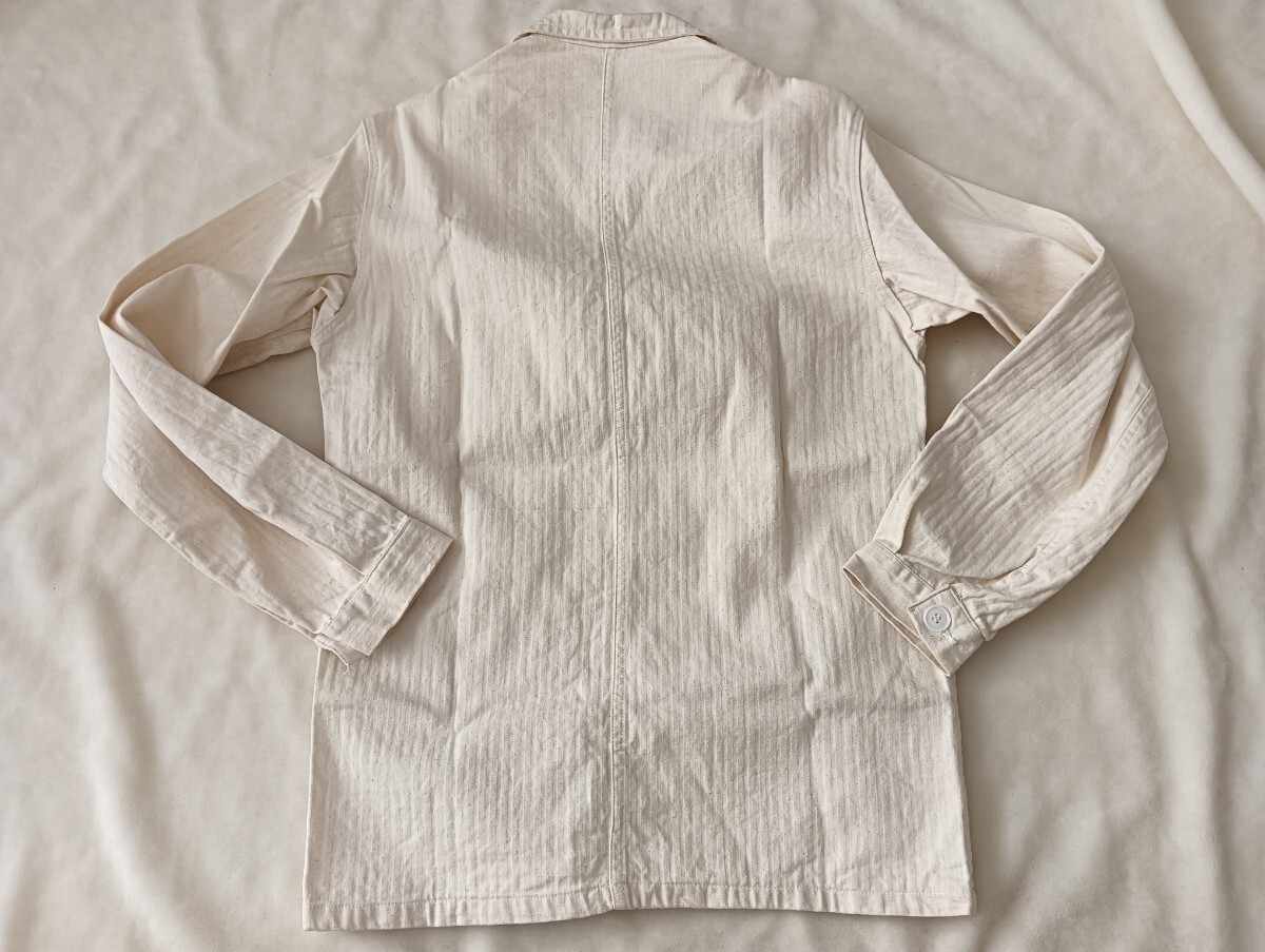 Product name: 50's フランス ヴィンテージ ヘリンボーンツイル ワーク vポケット ジャケット 生成り刺繍タグ /検索用 インディゴ French リネン