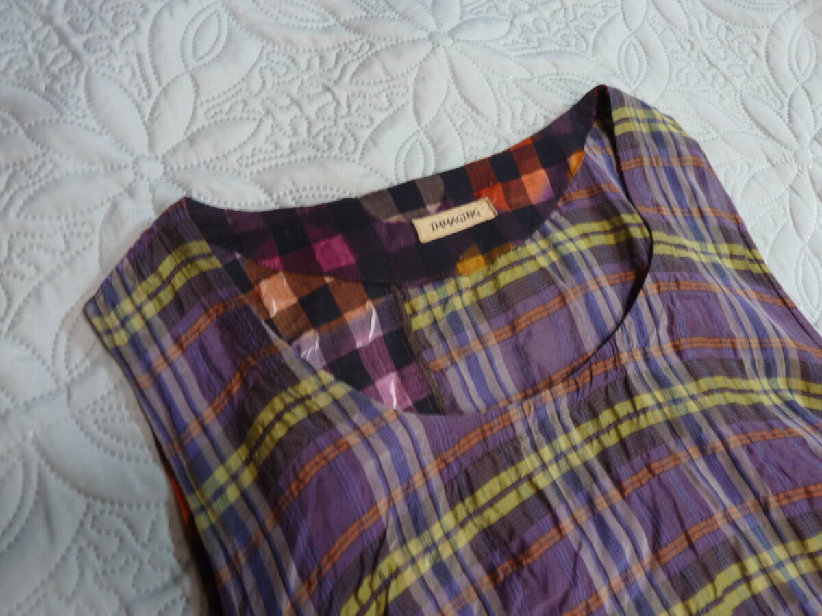 Product name: 春夏 美品 IMMAGING パープル チェック 2種類生地 シャーリング 変形 デザイン チュニック ワンピース M L ゆうパケ300円発送 同梱OK