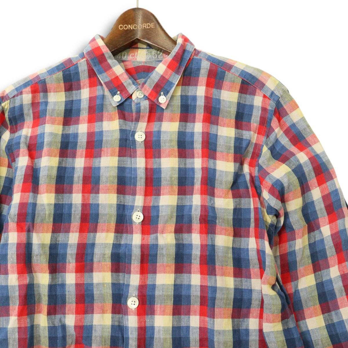 Product name: 40ct&525 タケオキクチ 春夏 麻 リネン100%★ 長袖 チェック柄 ボタンダウン シャツ Sz.3 メンズ 日本製